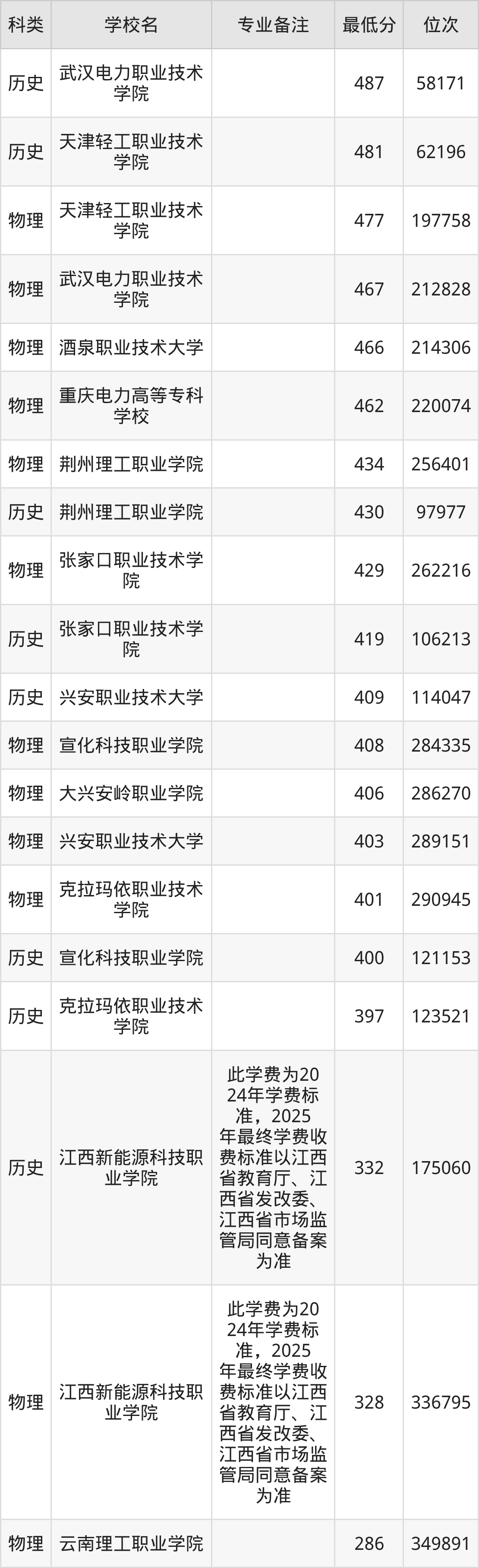 风力发电工程技术专业分数最低的民办大学是云南理工职业学院,其2025年最低分为210分,考生只要超专科线10分即有概率能被录取。