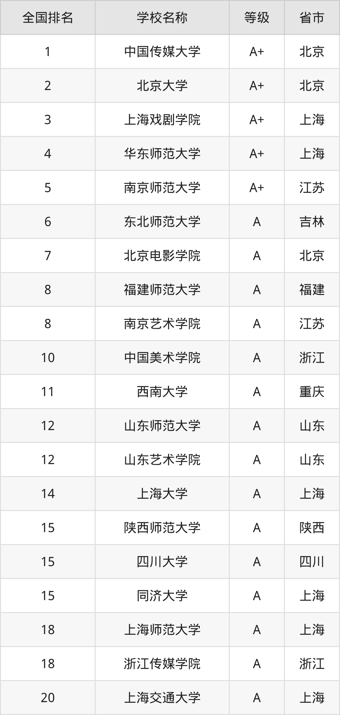 下面是广播电视编导专业全国排名前10的大学名单及实力评级: