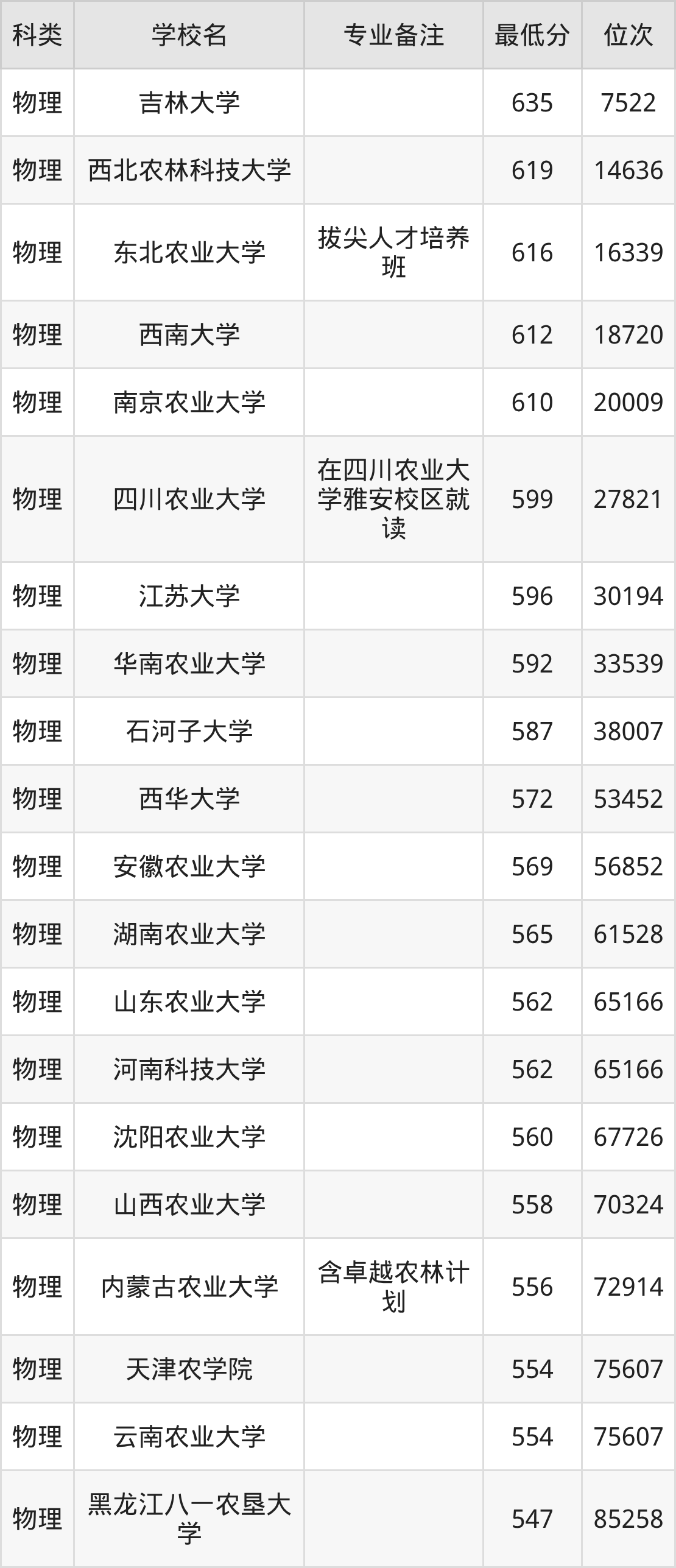 下面是2025年农业机械化及其自动化录取分数线Top21一览表: