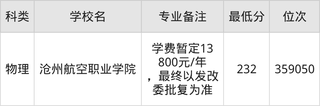 航空装备表面处理技术专业分数最低的民办大学是沧州航空职业学院,其2025年最低分为232分,考生只要超专科线32分即有概率能被录取。