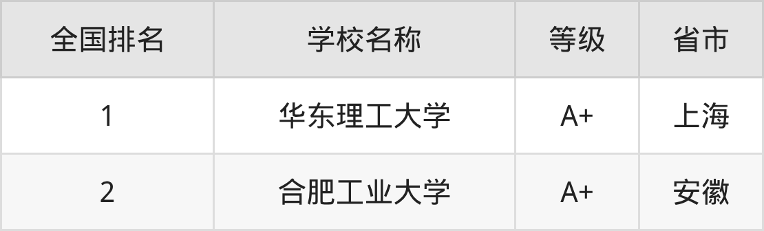 全国电子信息材料开设院校参与排名的共有2所,实力最强的是华东理工大学(全国排名第1名),其专业实力等级被评为A+级。