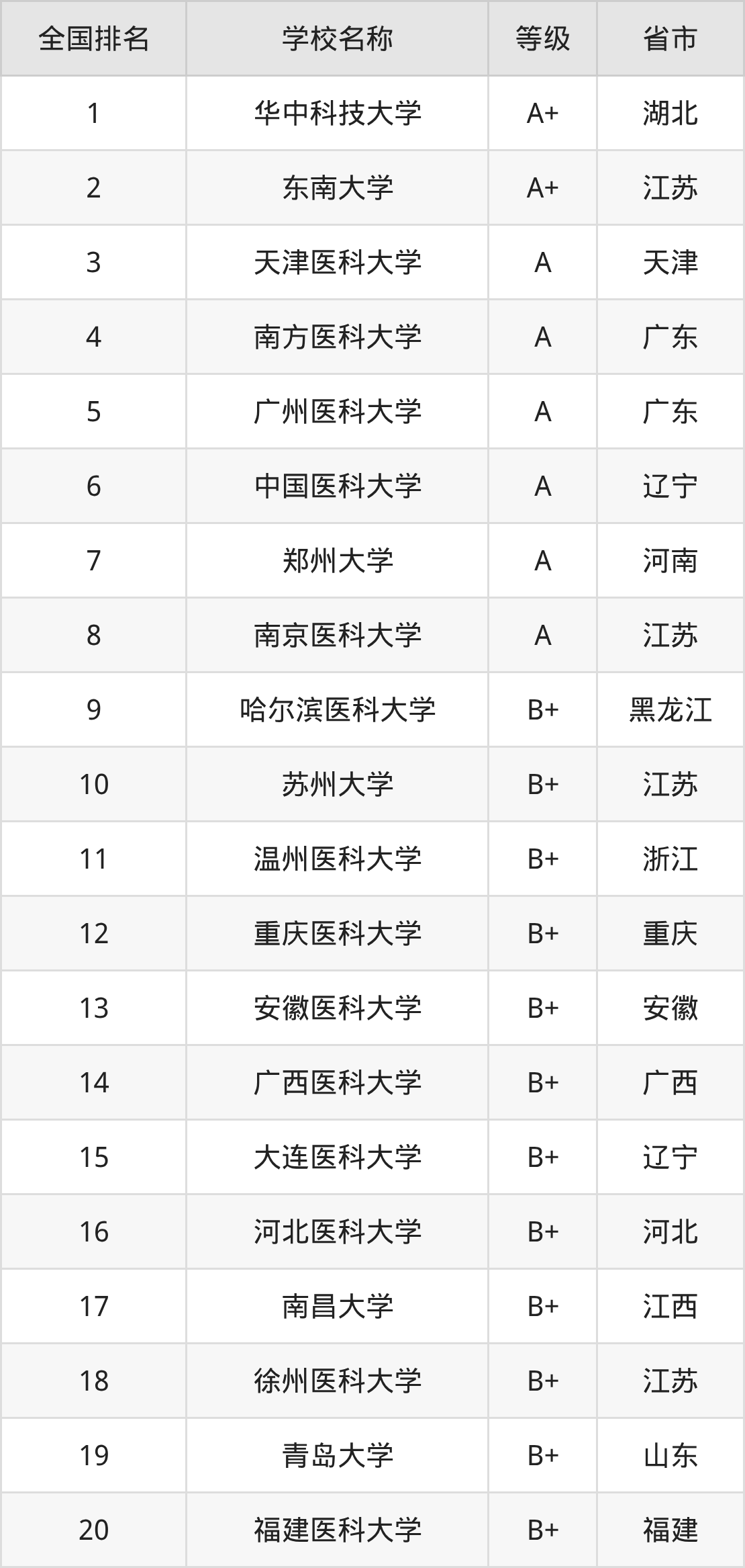 下面是医学影像学专业全国排名前10的大学名单及实力评级: