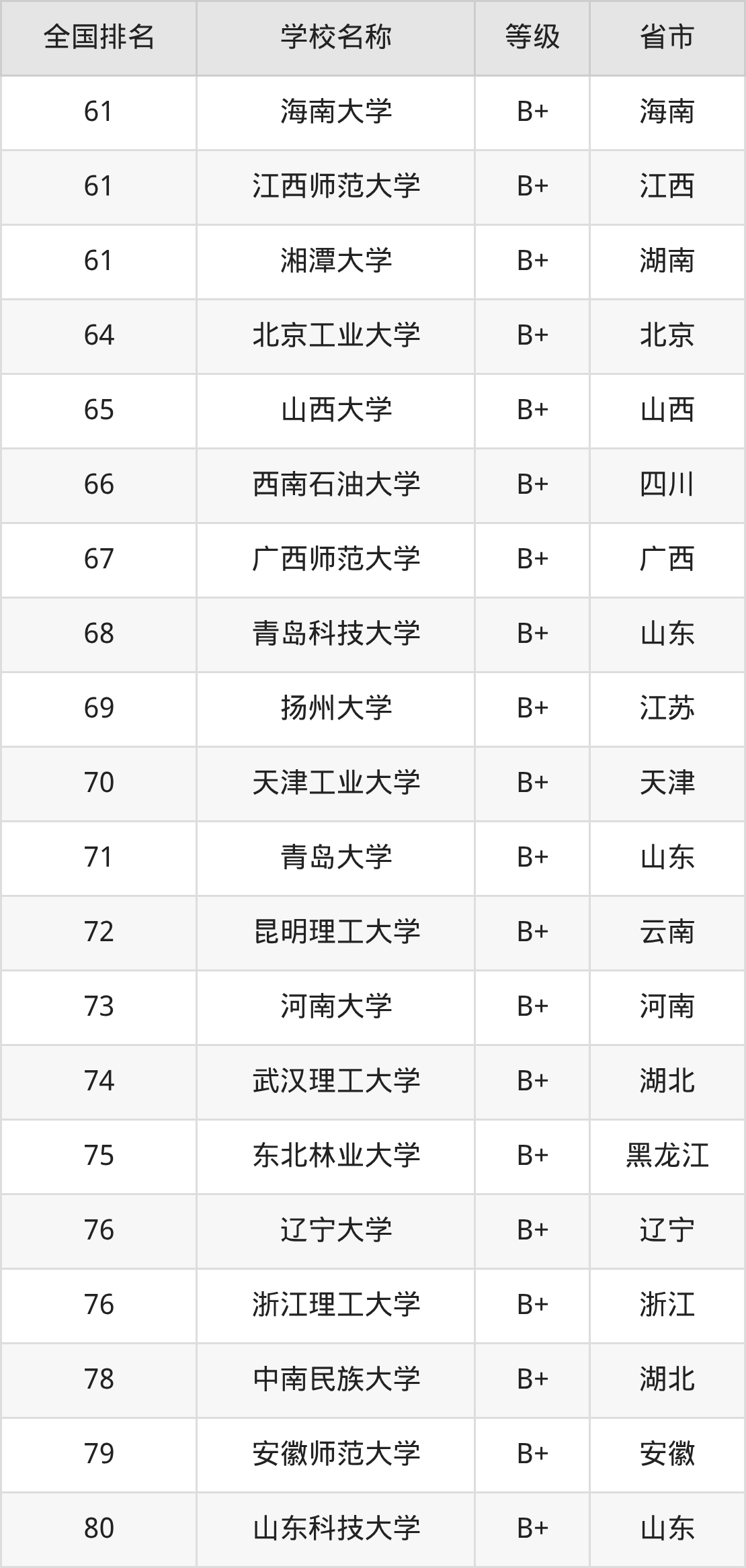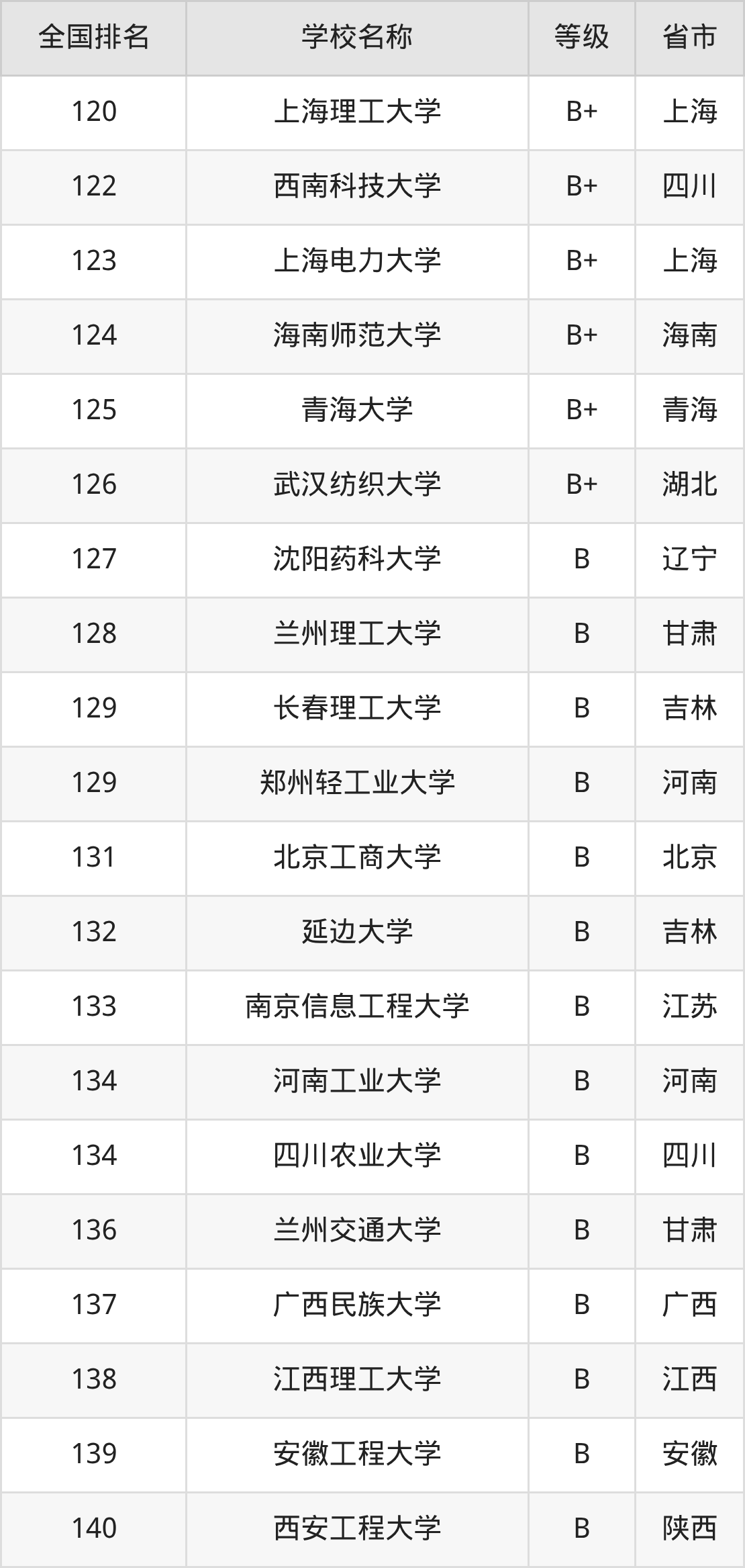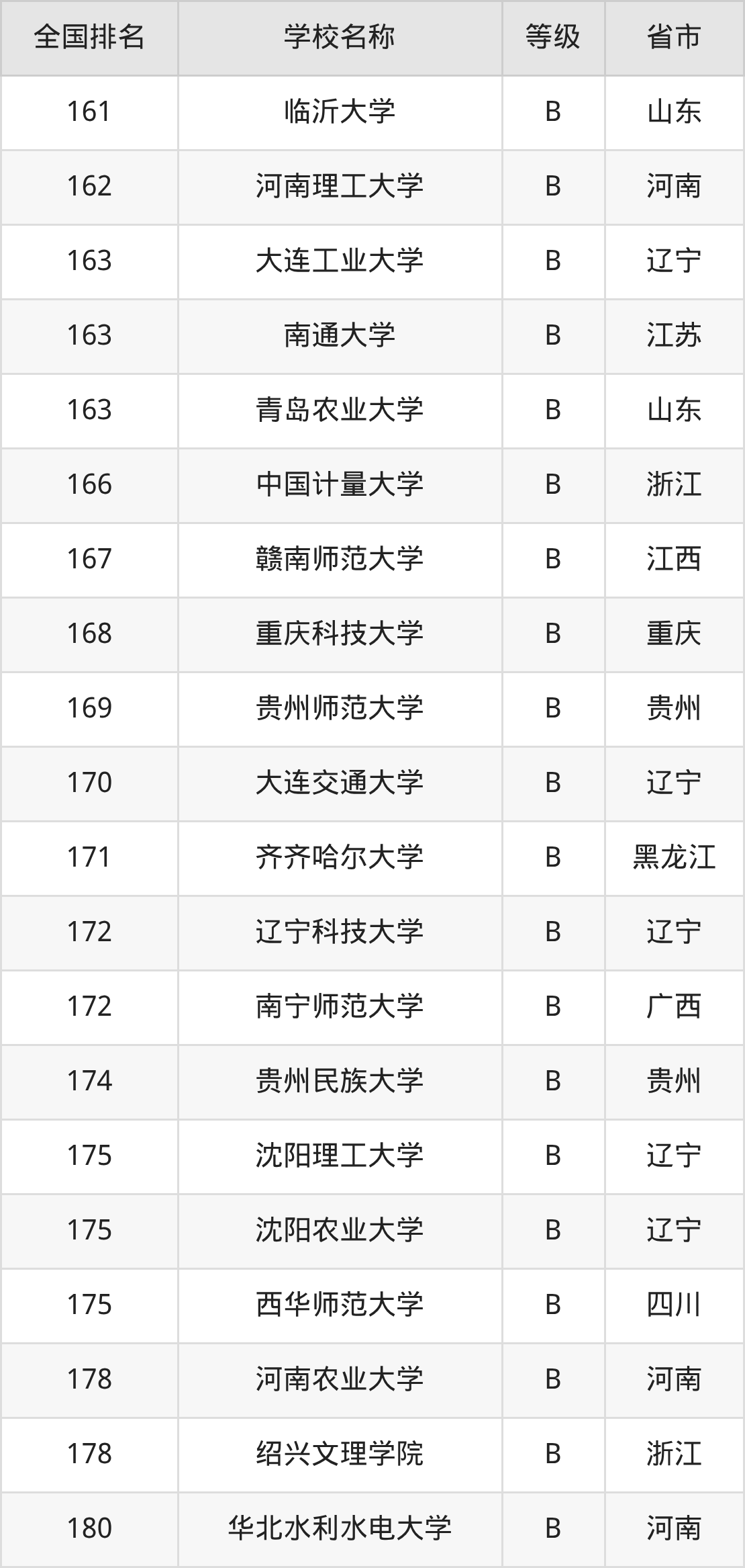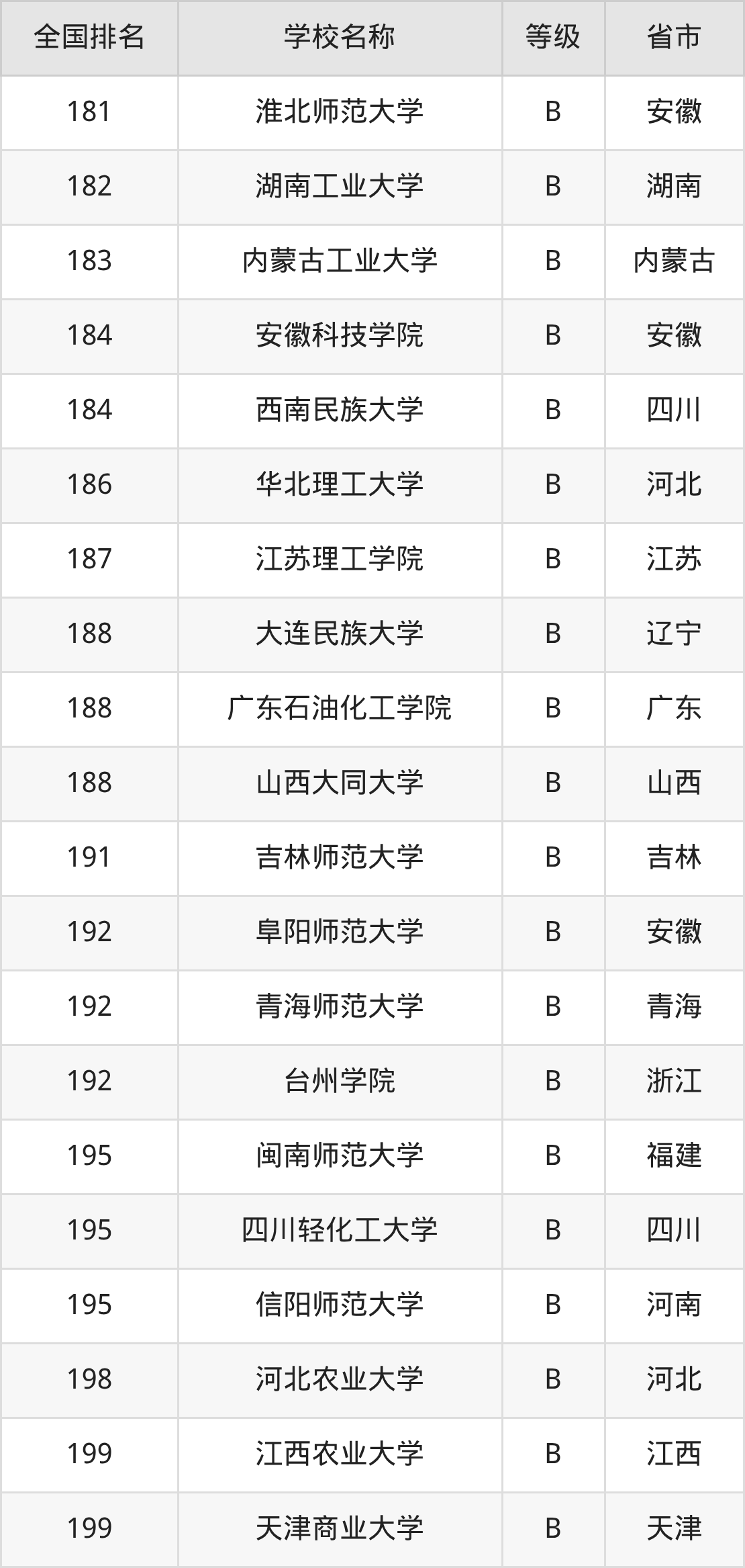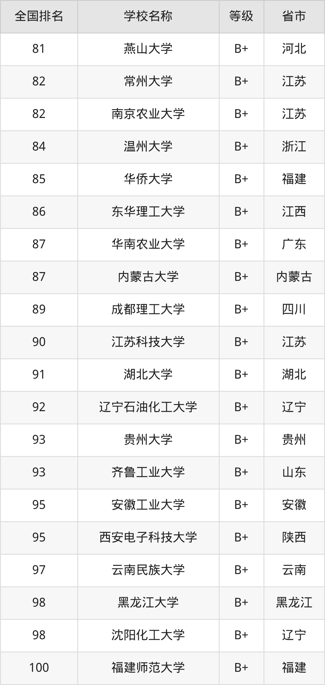 完整版排名请看下表: