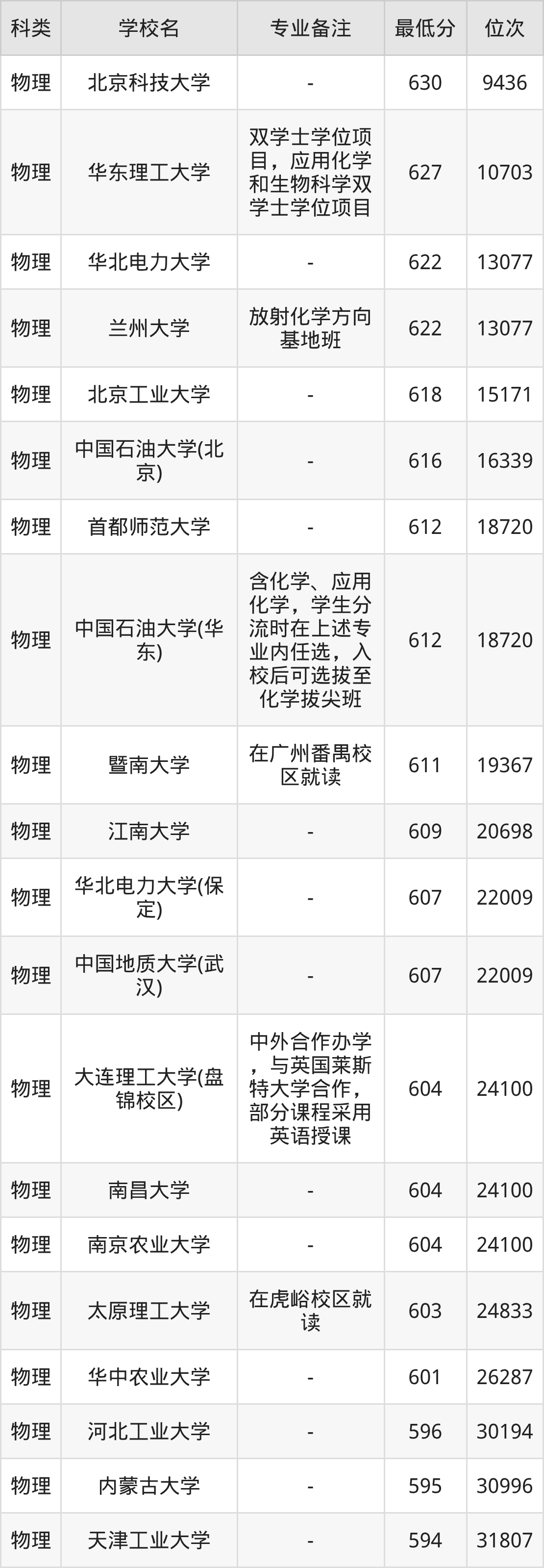三、应用化学2025年录取分数线