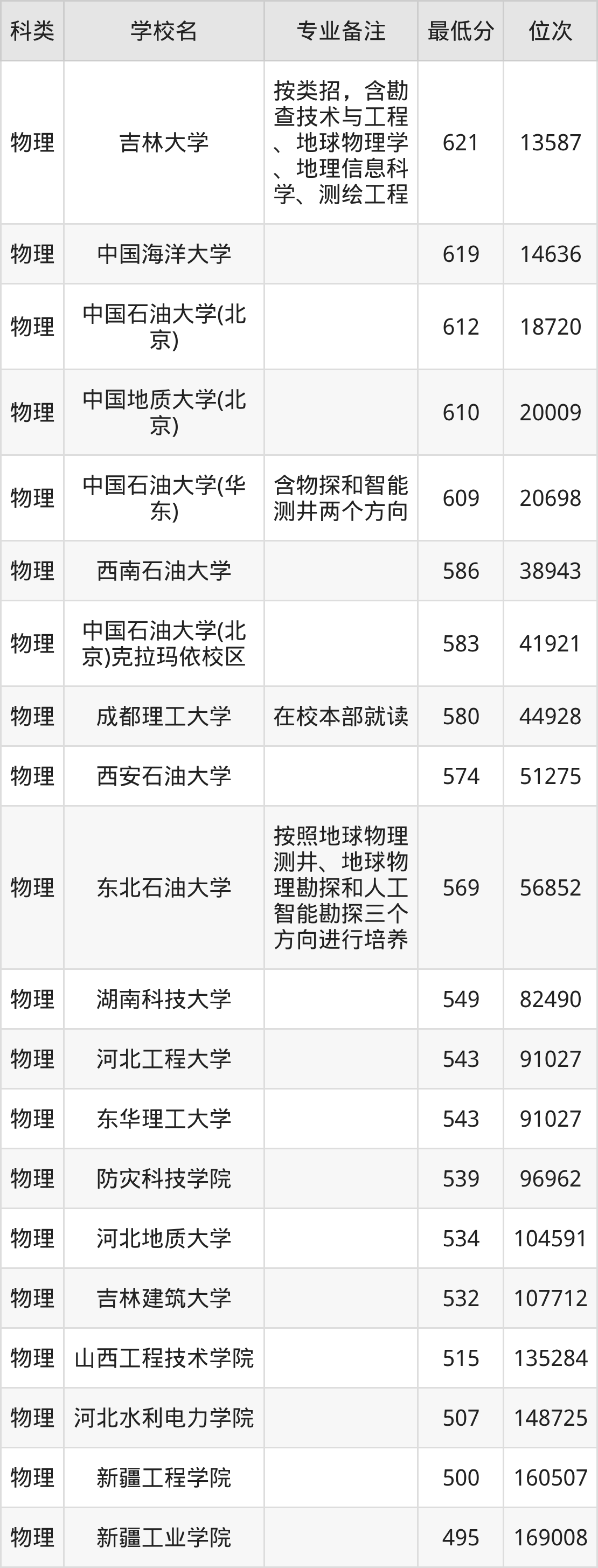 下面是2025年勘查技术与工程录取分数线Top20一览表: