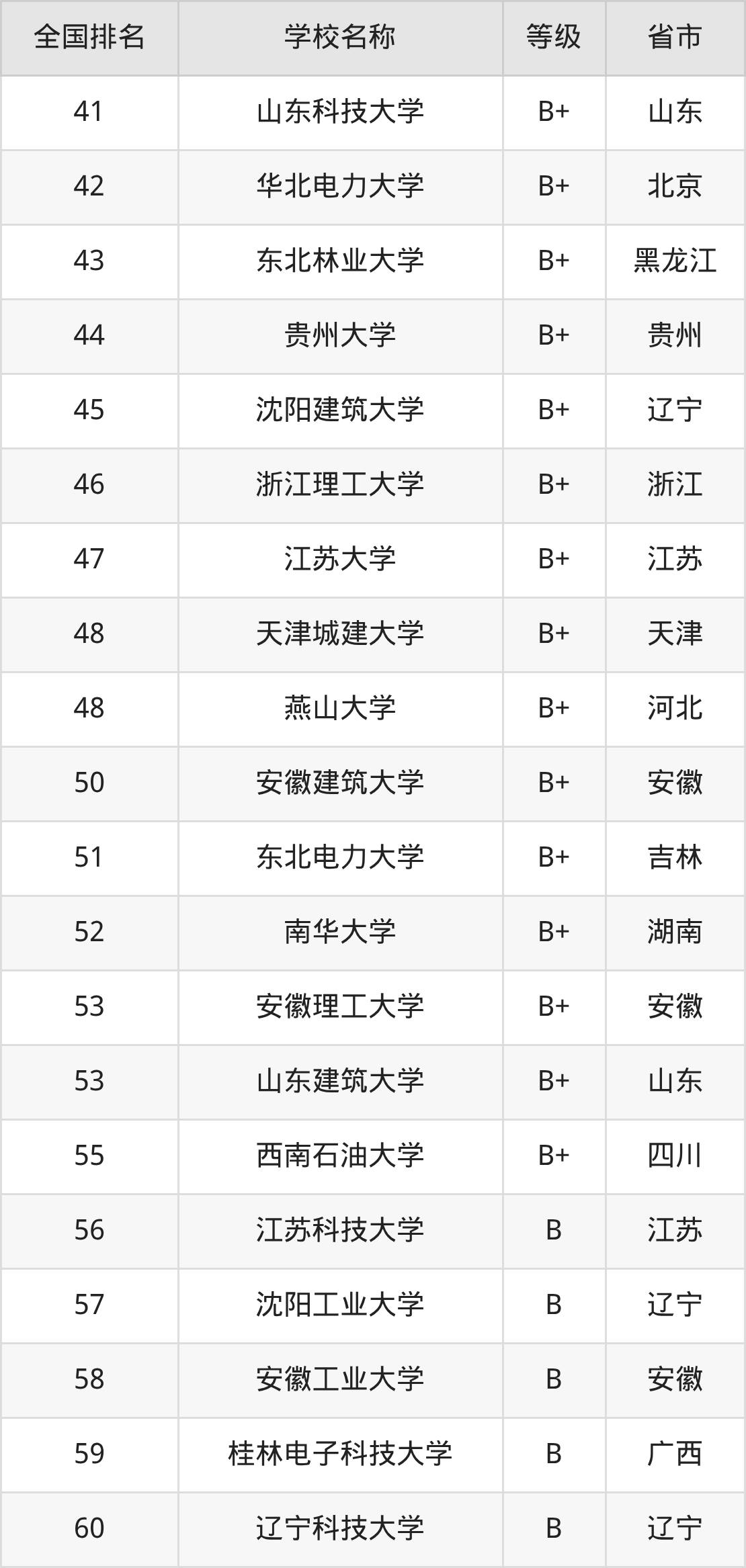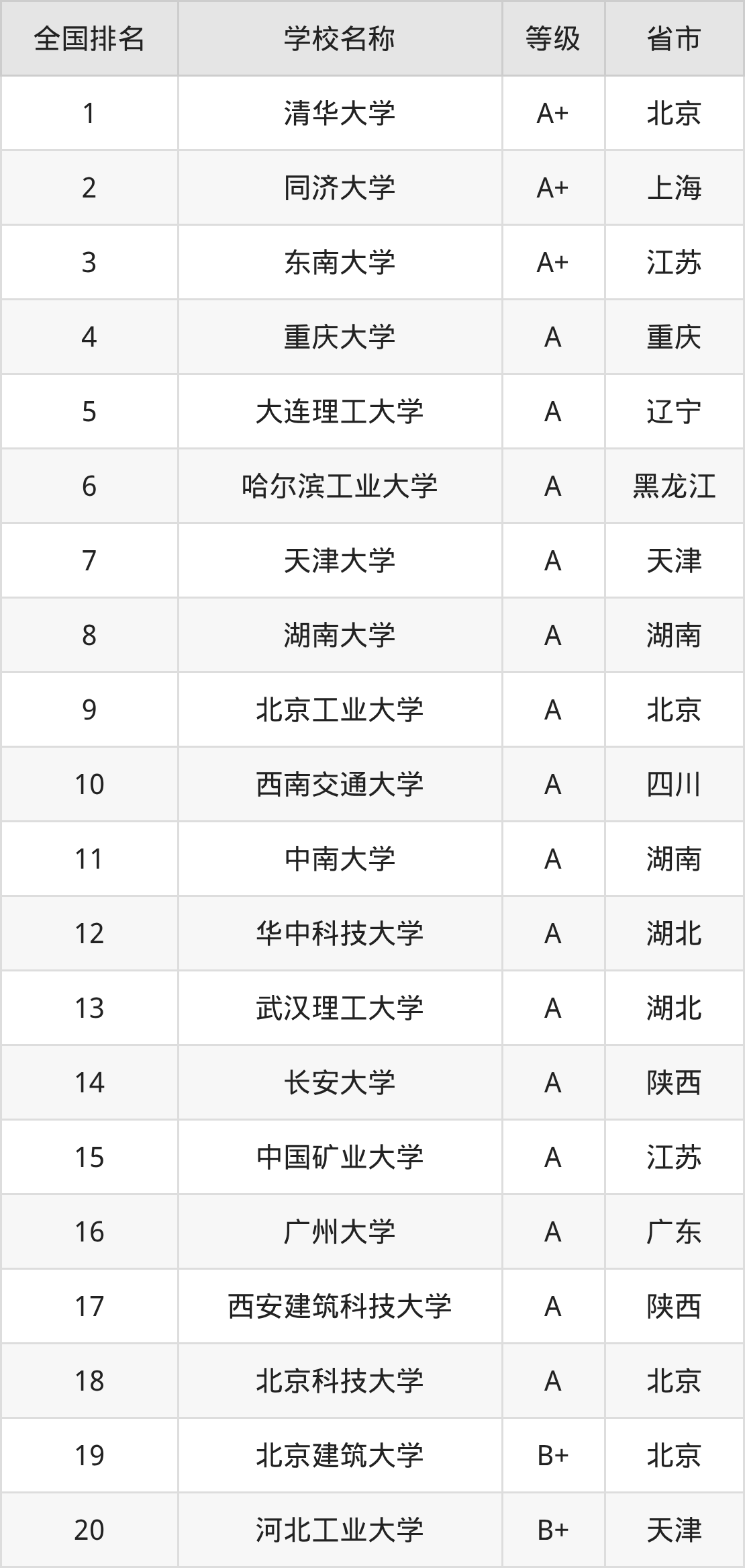 下面是建筑环境与能源应用工程专业全国排名前10的大学名单及实力评级: