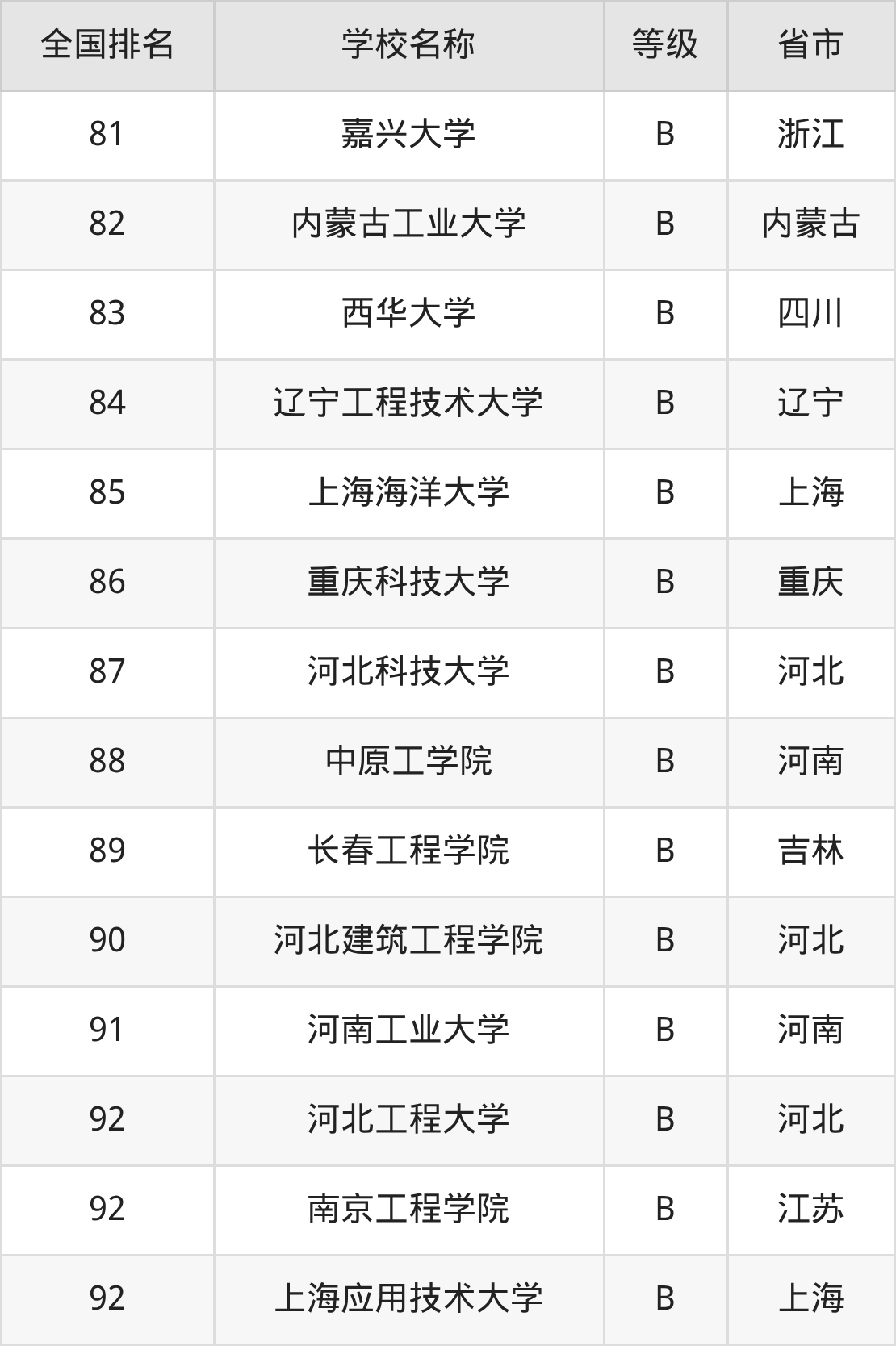全国建筑环境与能源应用工程开设院校参与排名的共有94所,实力最强的是清华大学(全国排名第1名),其专业实力等级被评为A+级。