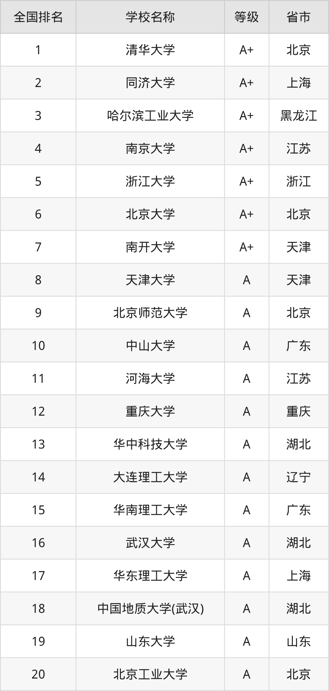 下面是环境工程专业全国排名前10的大学名单及实力评级: