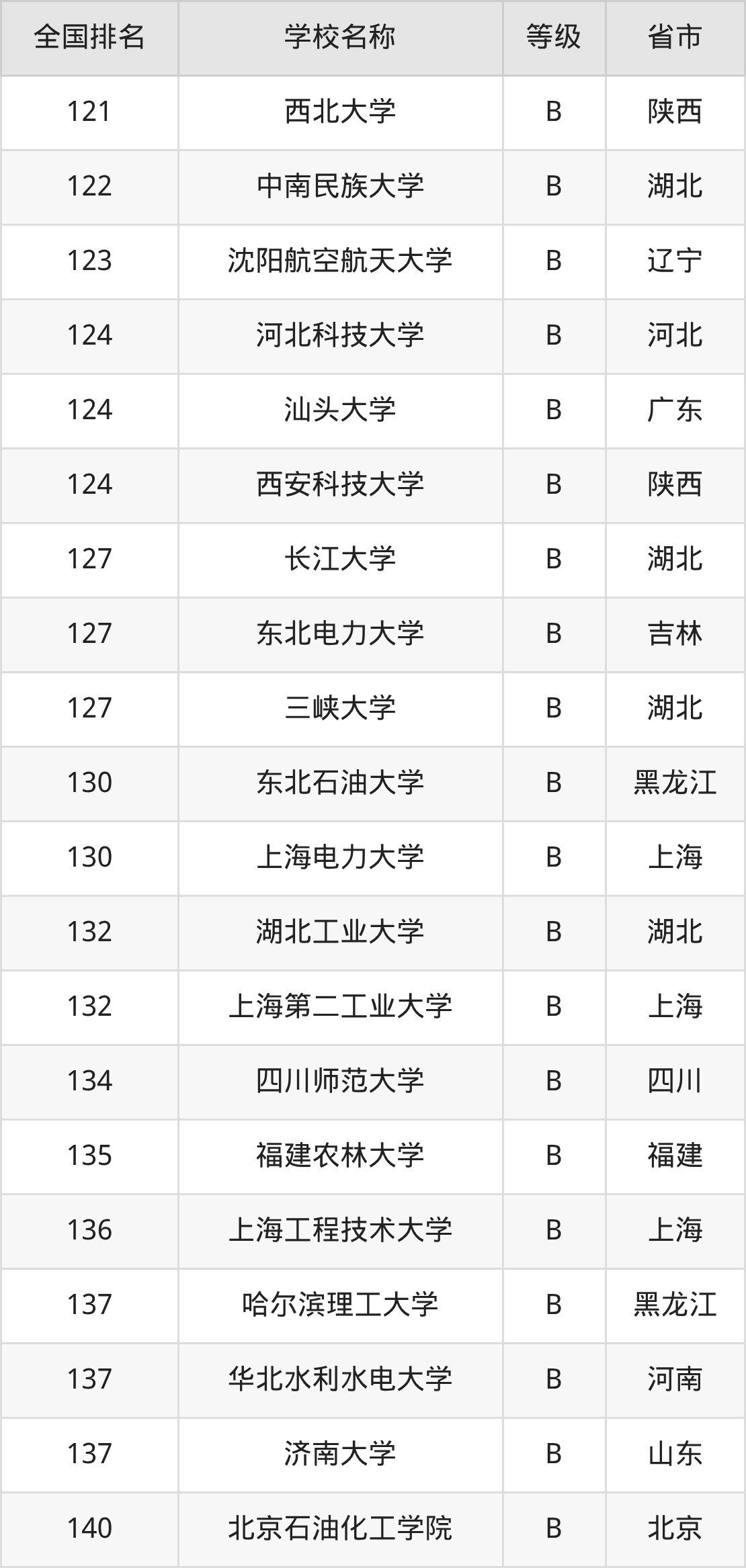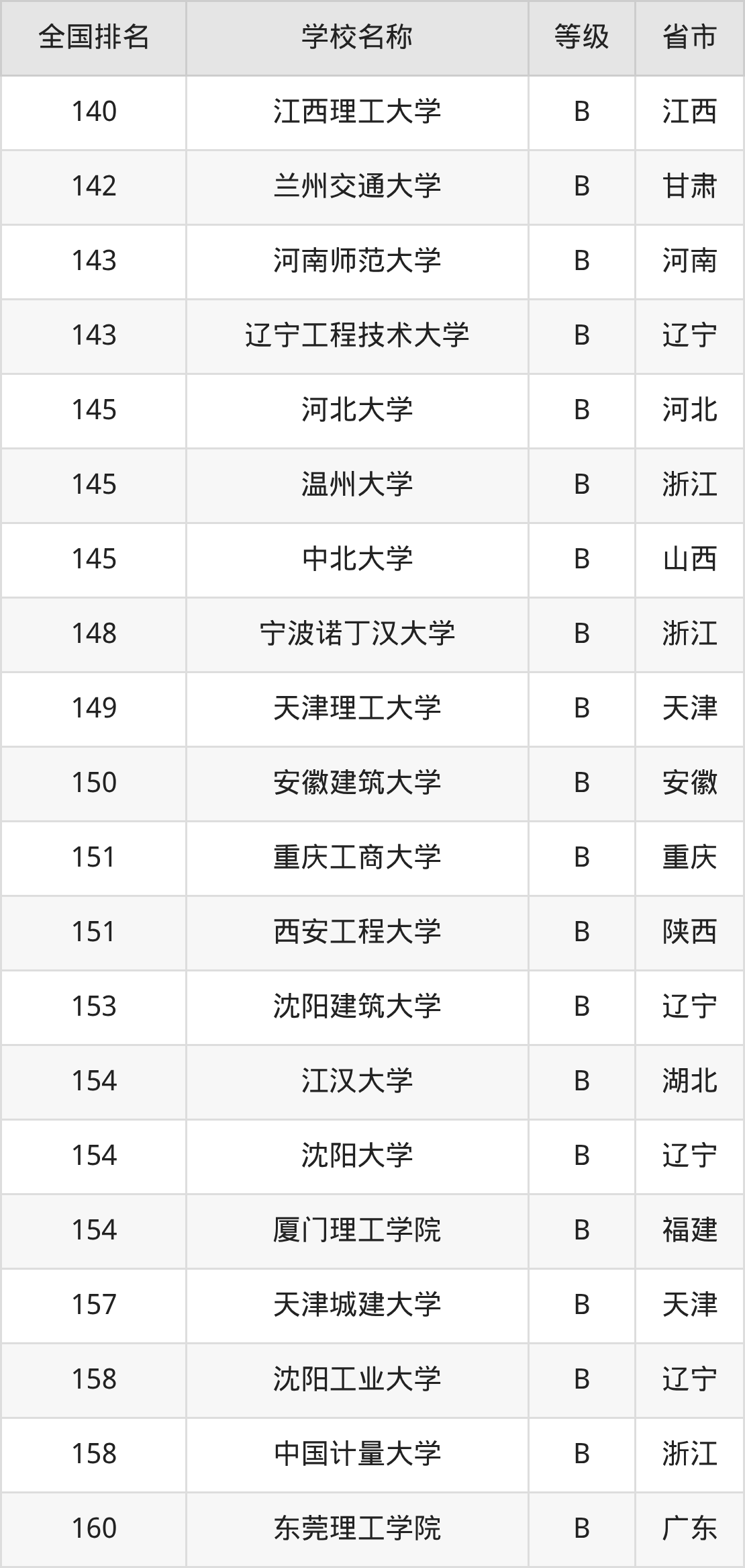 全国环境工程开设院校参与排名的共有192所,实力最强的是清华大学(全国排名第1名),其专业实力等级被评为A+级。