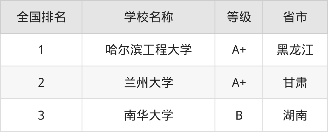 下面是核化工与核燃料工程专业全国排名前3的大学名单及实力评级: