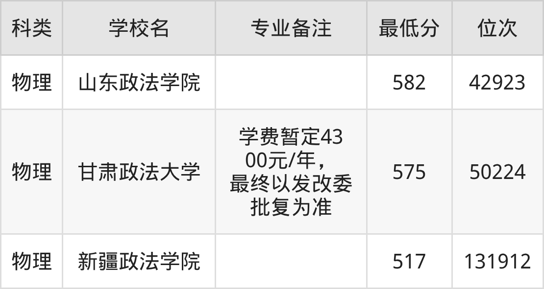下面是2025年司法鉴定学录取分数线Top3一览表: