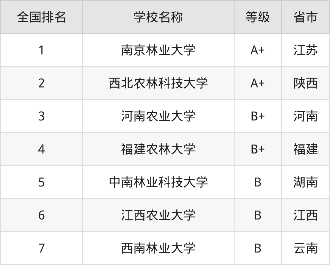 下面是智慧林业专业全国排名前7的大学名单及实力评级:
