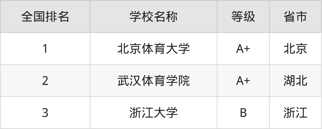 下面是智能体育工程专业全国排名前3的大学名单及实力评级:
