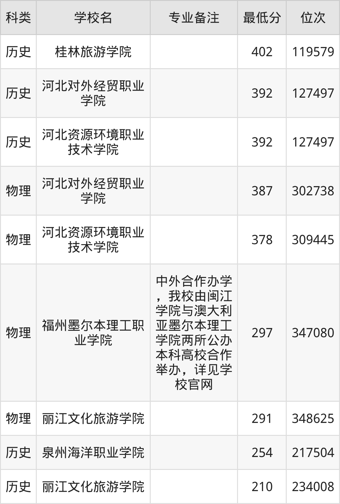 休闲服务与管理专业分数最低的民办大学是丽江文化旅游学院,其2025年最低分为210分,考生只要超专科线10分即有概率能被录取。