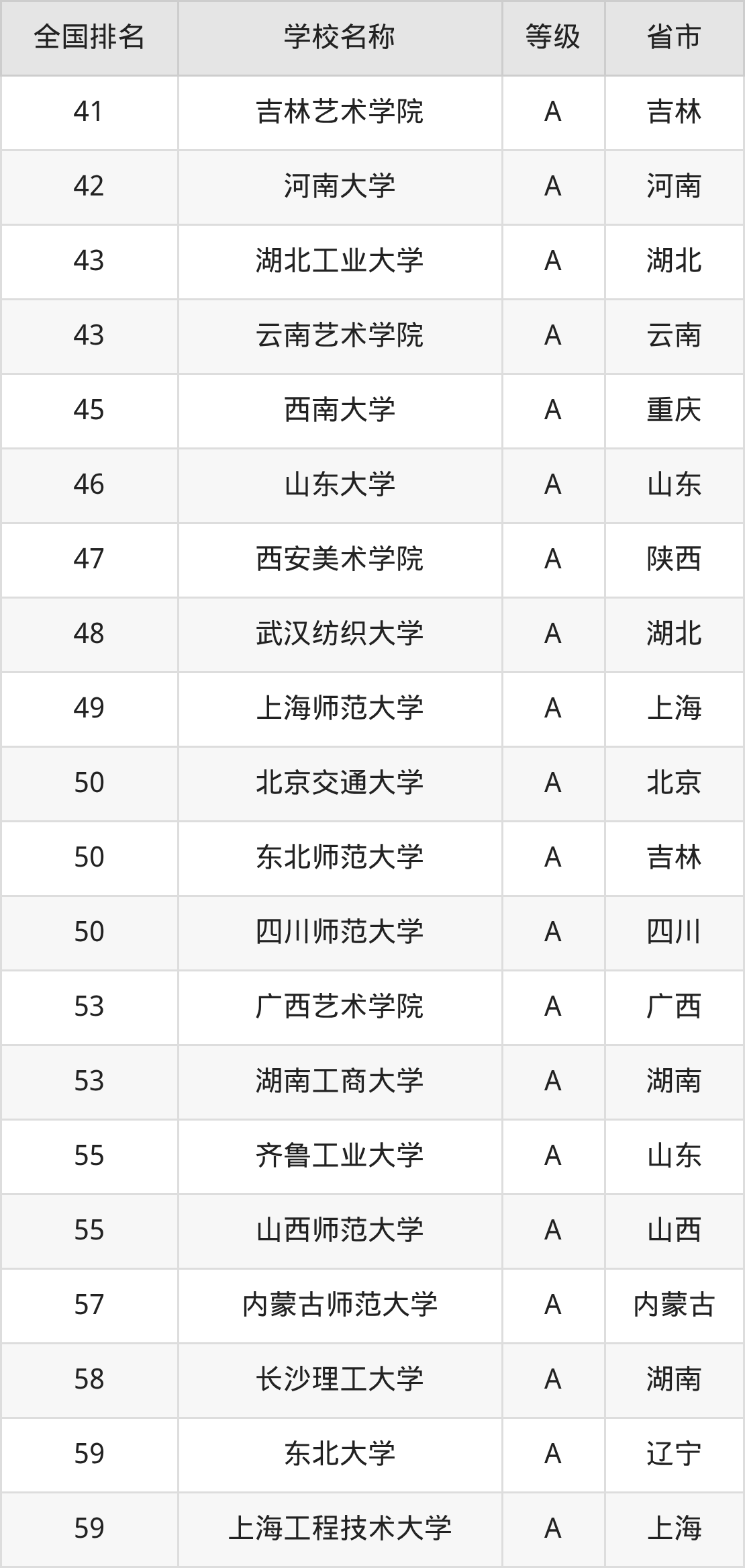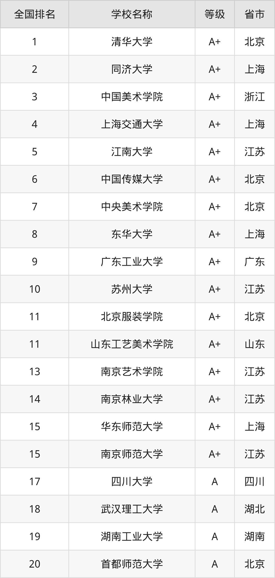 下面是视觉传达设计专业全国排名前10的大学名单及实力评级: