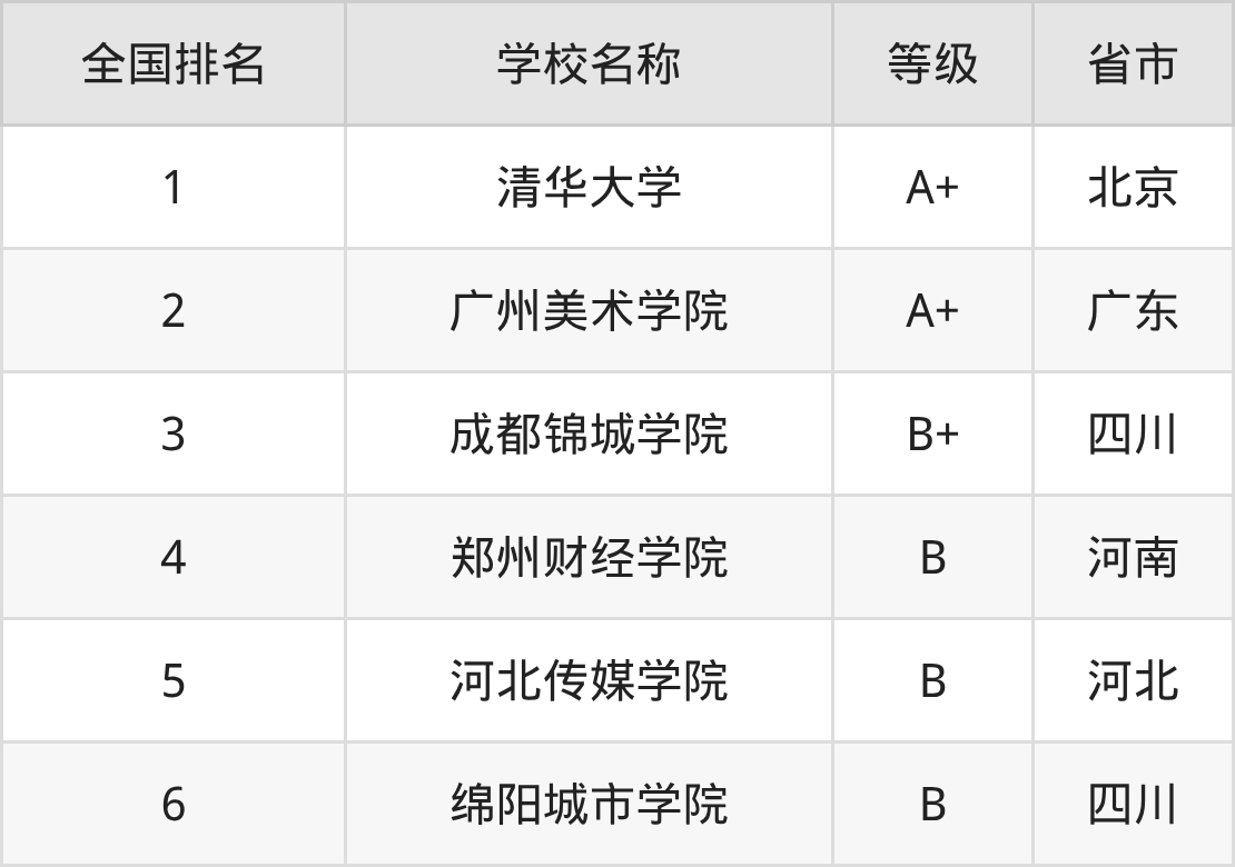 下面是智能工程与创意设计专业全国排名前6的大学名单及实力评级: