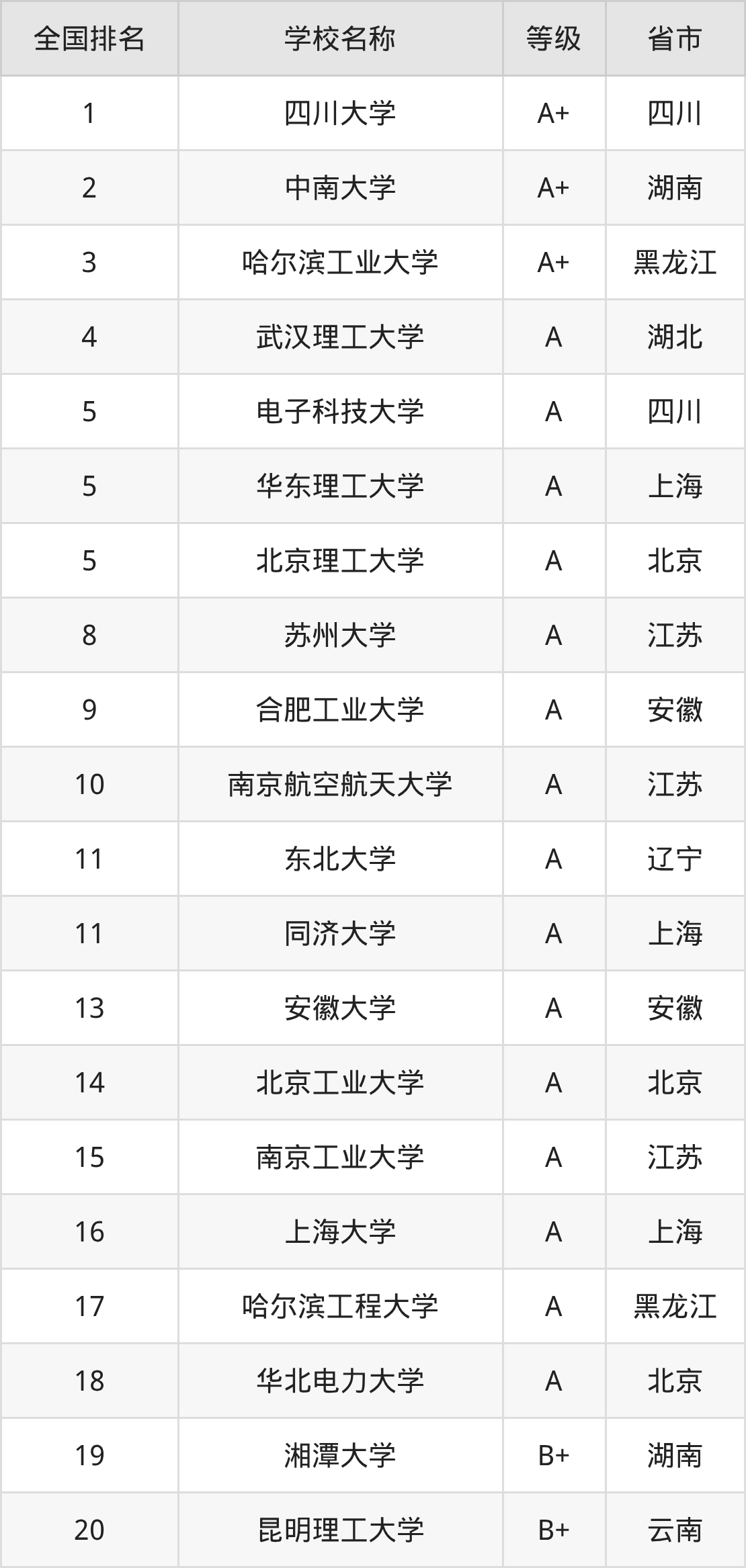 下面是新能源材料与器件专业全国排名前10的大学名单及实力评级: