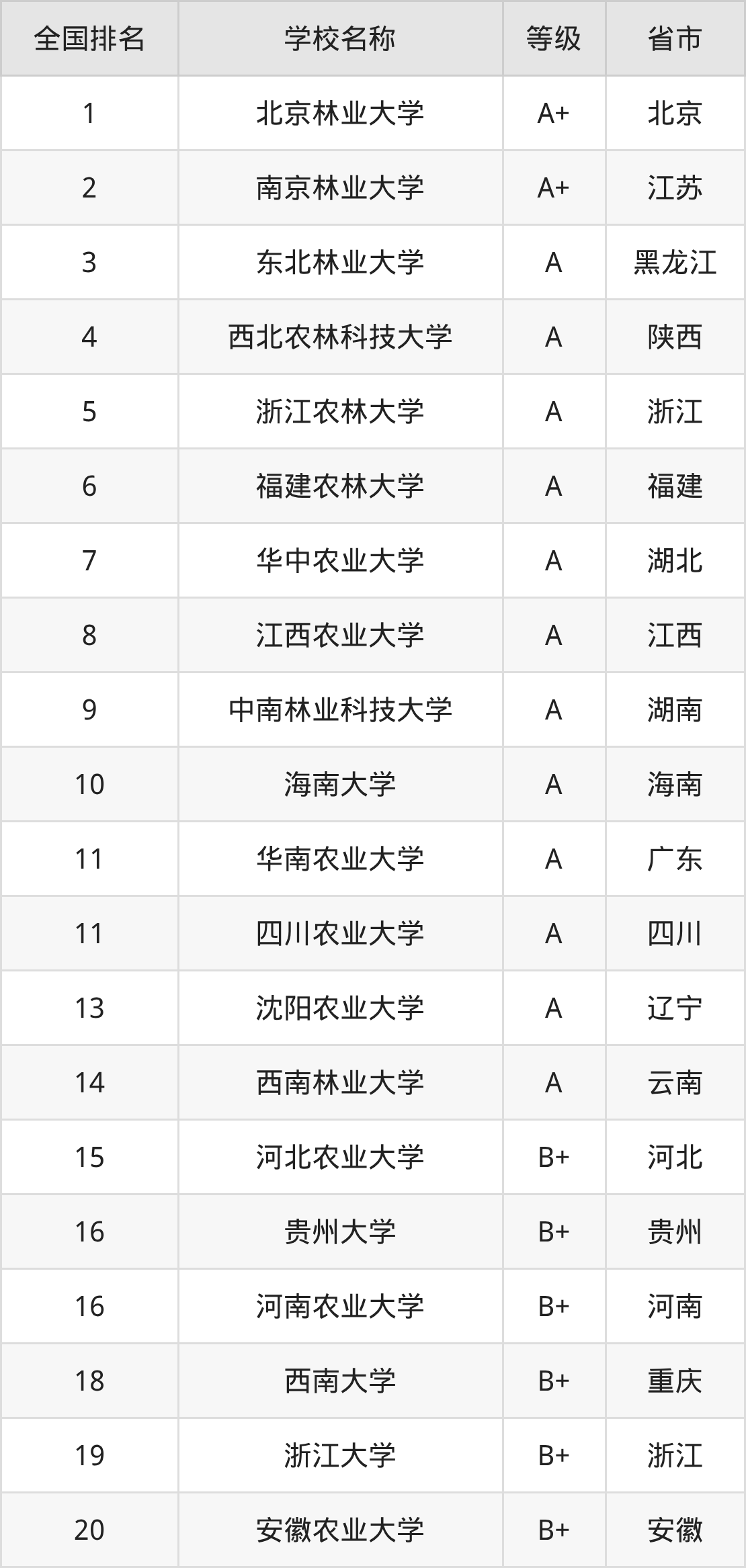 1、北京林业大学(A+级)
