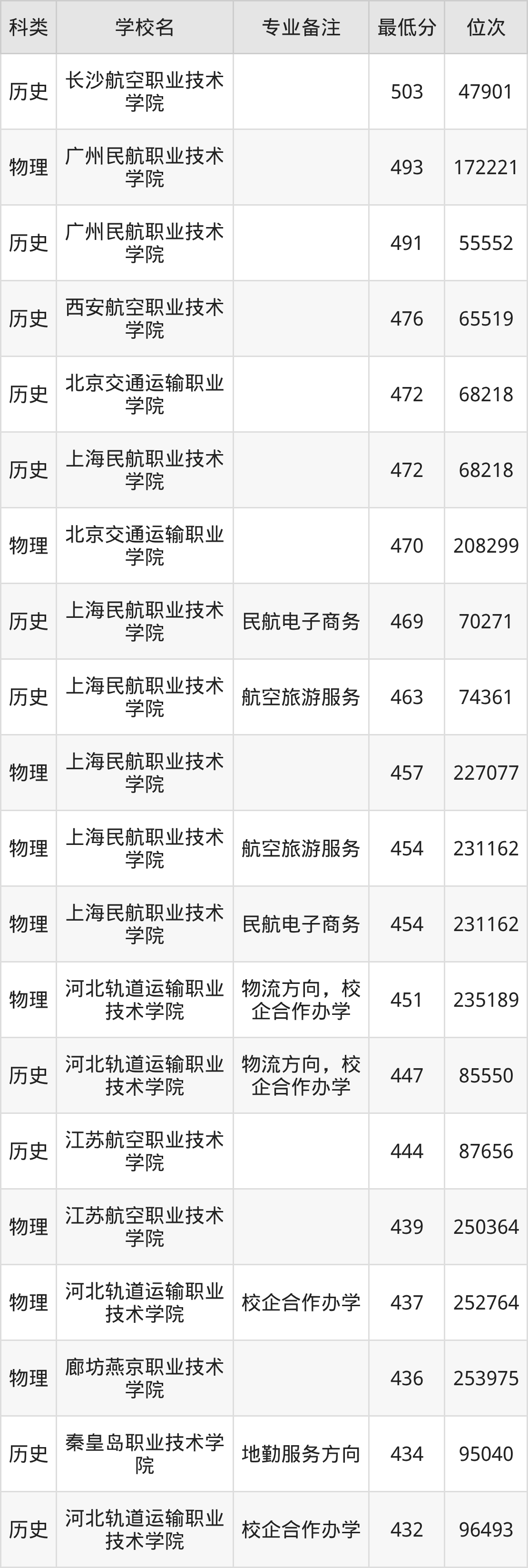 下面是2025年民航运输服务录取分数线Top60一览表: