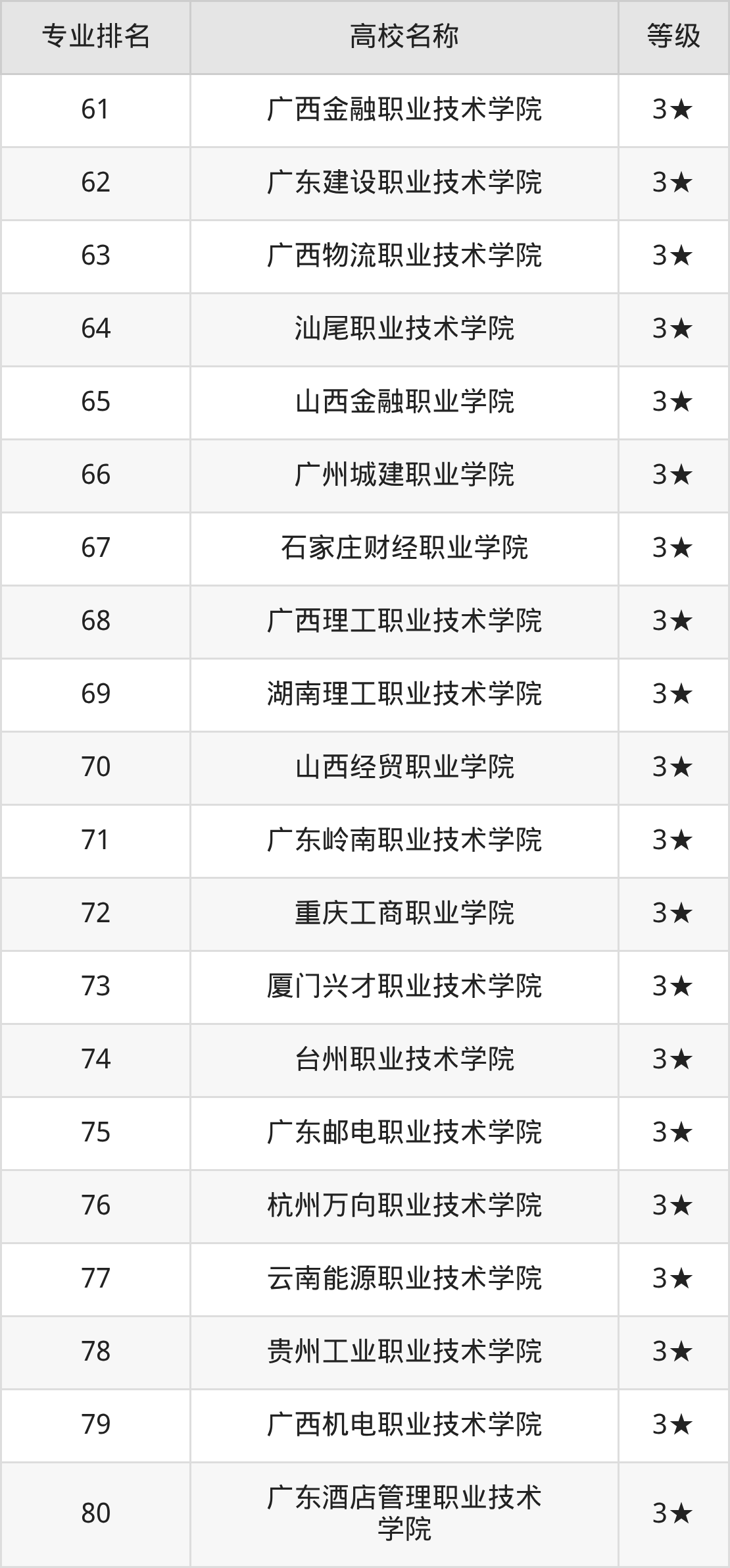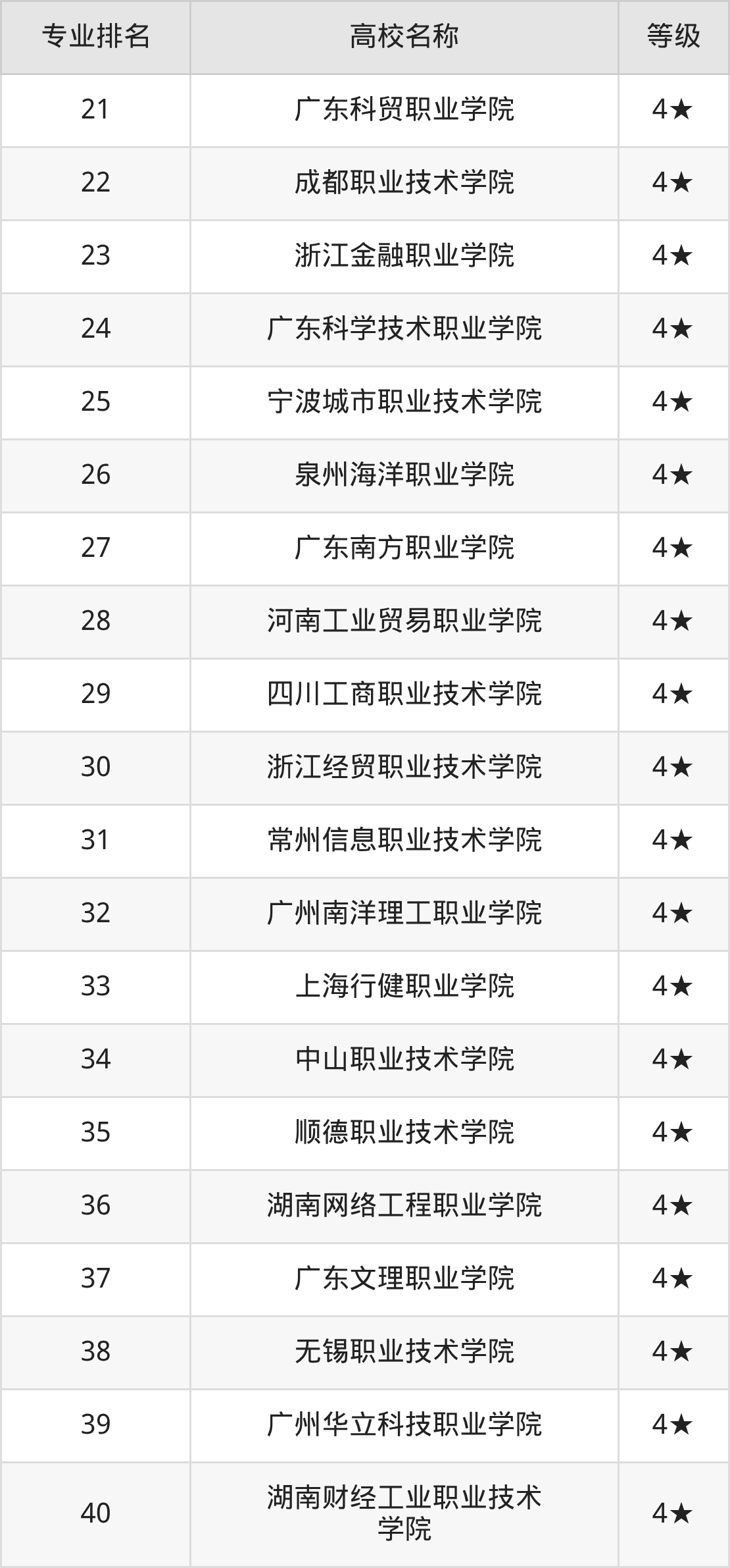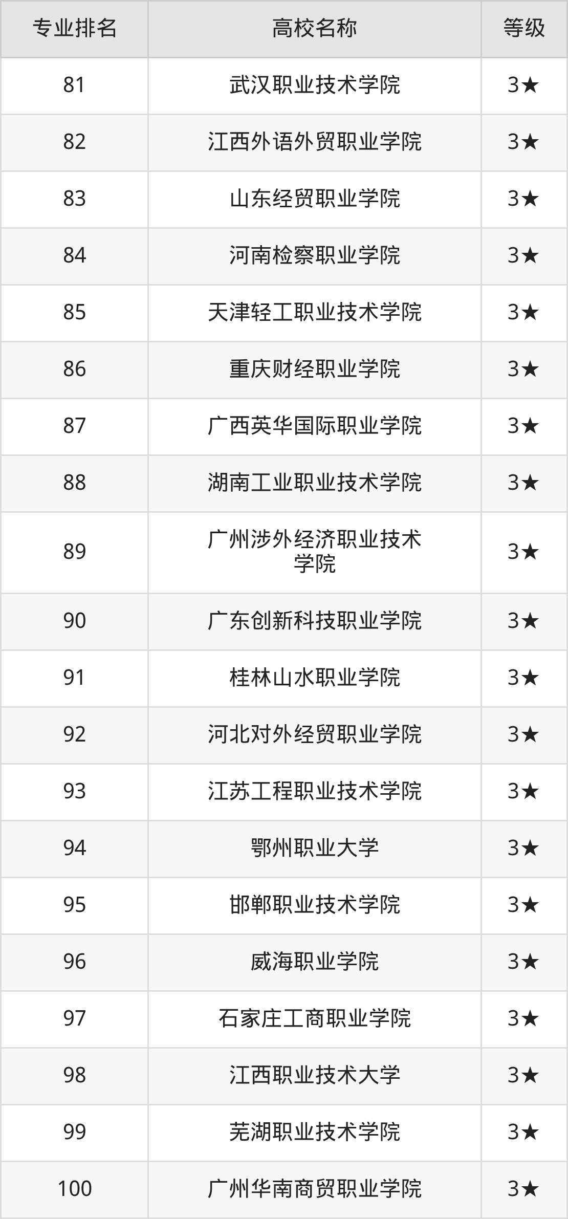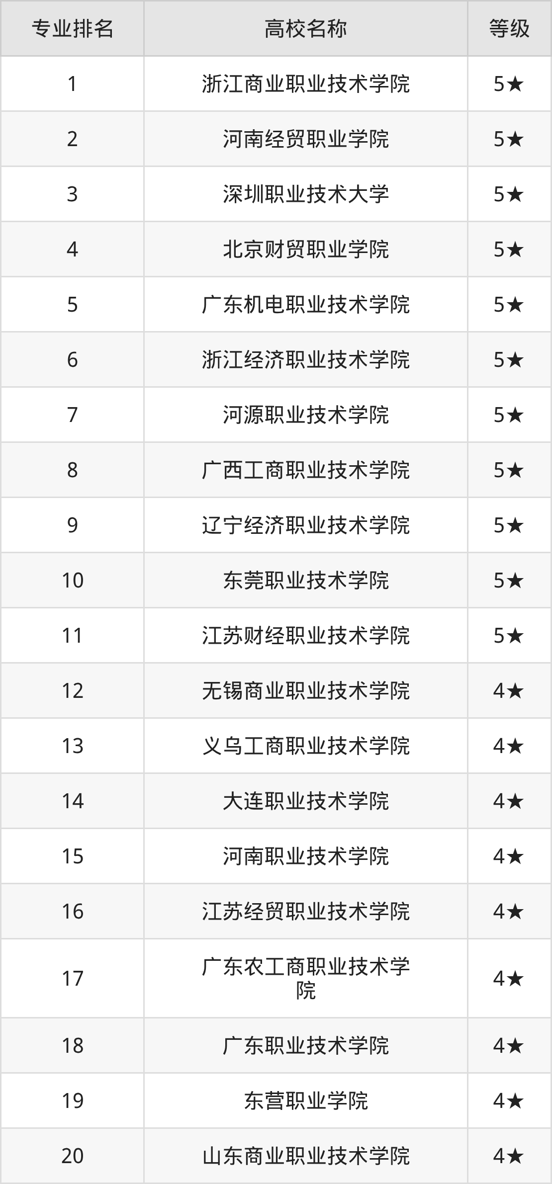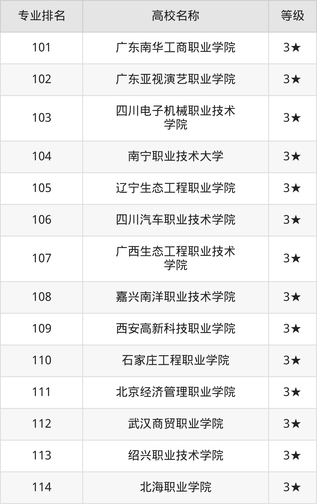 全国工商企业管理开设院校参与排名的共有114所,实力最强的是浙江商业职业技术学院(全国排名第1名),其专业实力等级被评为5★级。