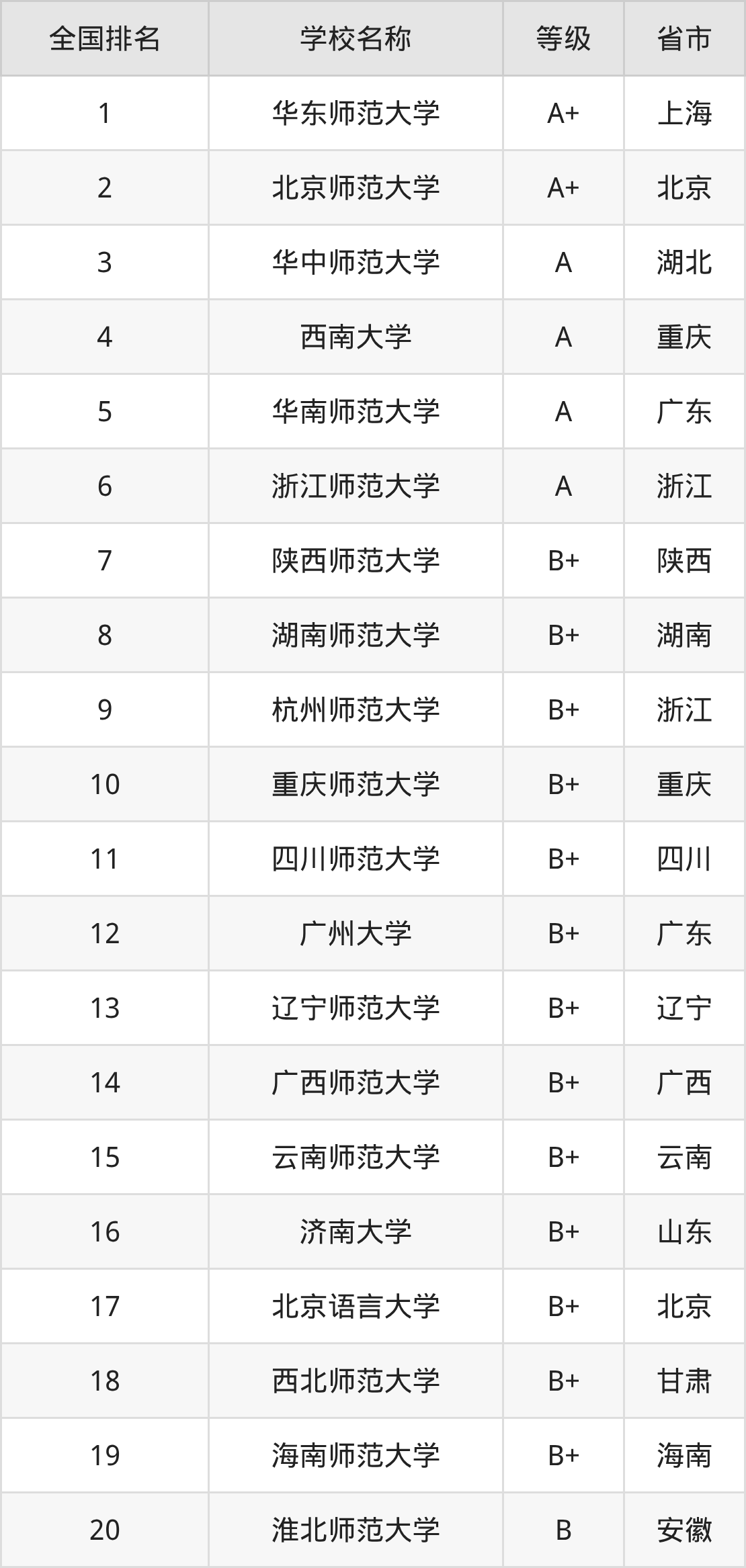 1、华东师范大学(A+级)