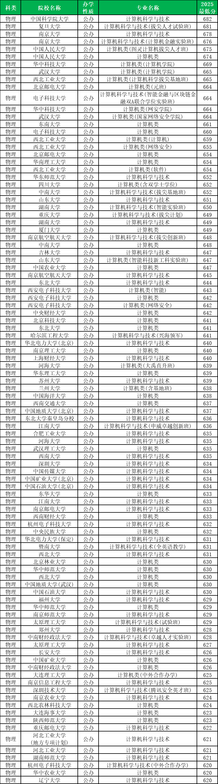 下面是2025年计算机专业分数线排名最低的10所公办大学(均为物理类):