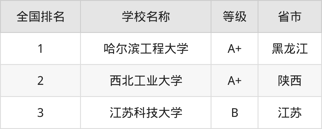 下面是水声工程专业全国排名前3的大学名单及实力评级: