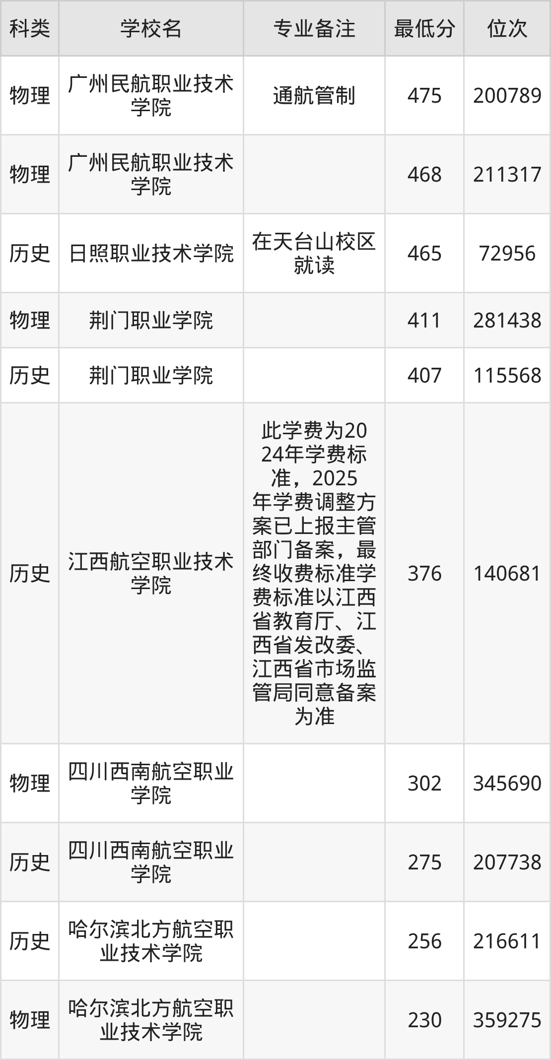 二、通用航空航务技术2025年录取分数线