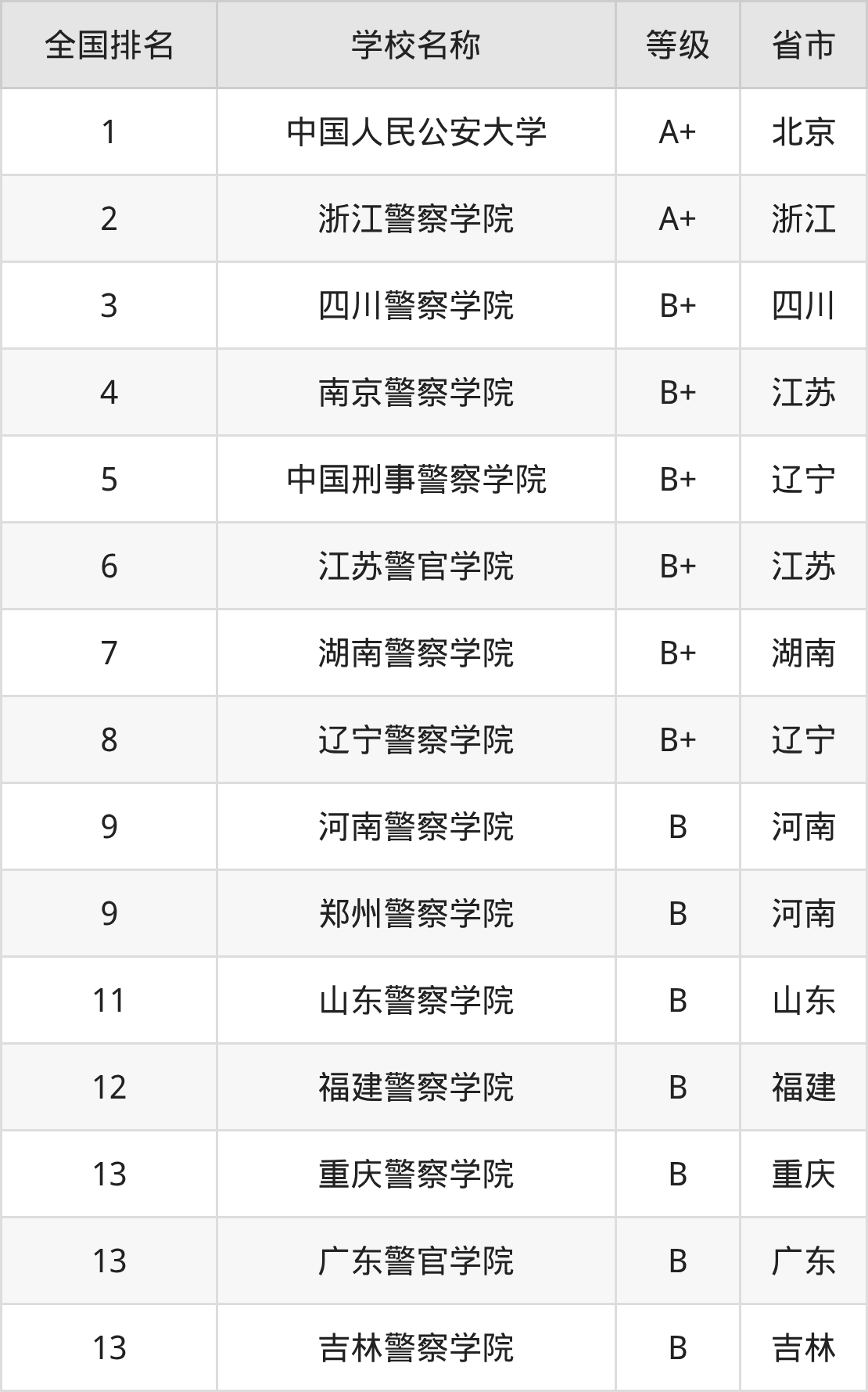 1、中国人民公安大学(A+级)
