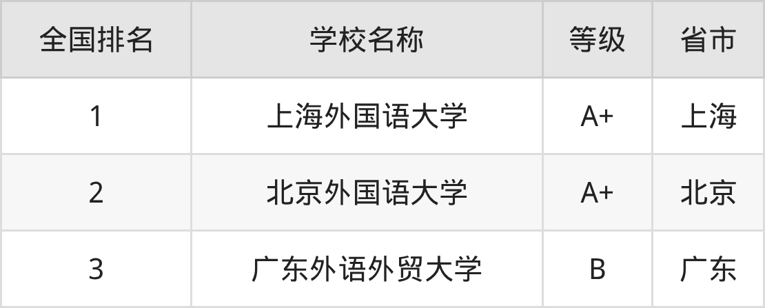 1、上海外国语大学(A+级)