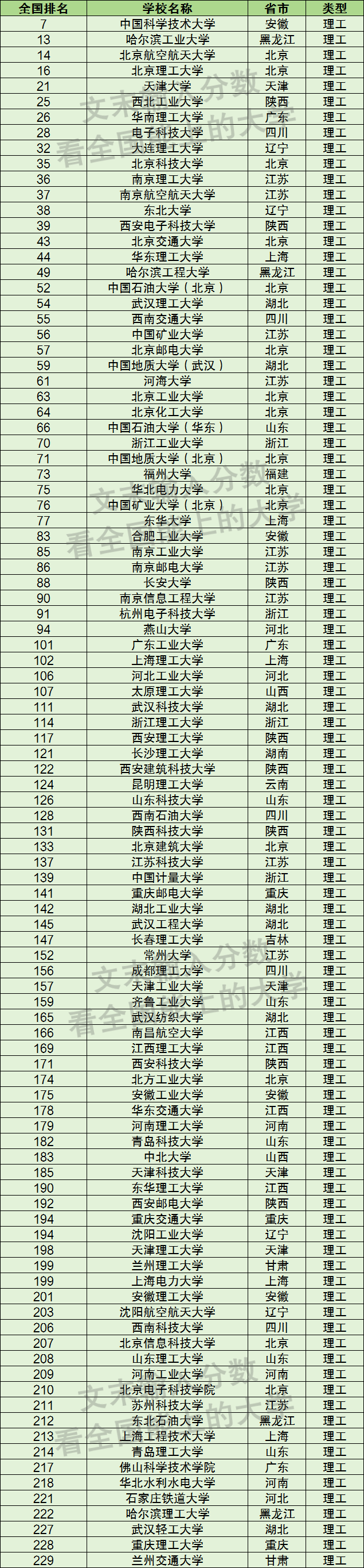这些理科大学在教育教学、科研实力、师资等方面都有着出色的表现,除了这些理科大学之外,例如西北工业大学、华南理工大学、电子科技大学、大连理工大学、北京科技大学等等都是非常优秀的理科大学。