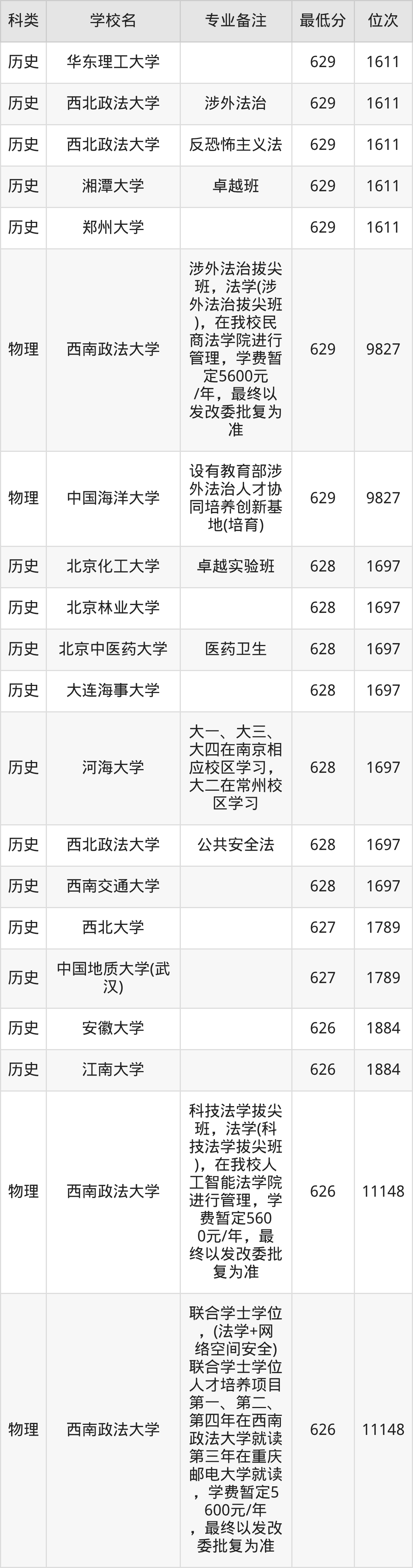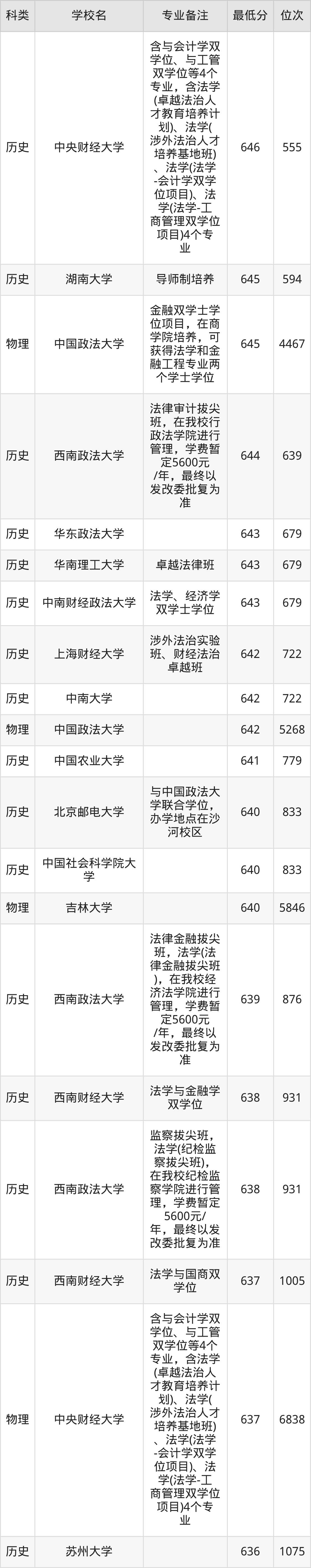 三、法学2025年录取分数线