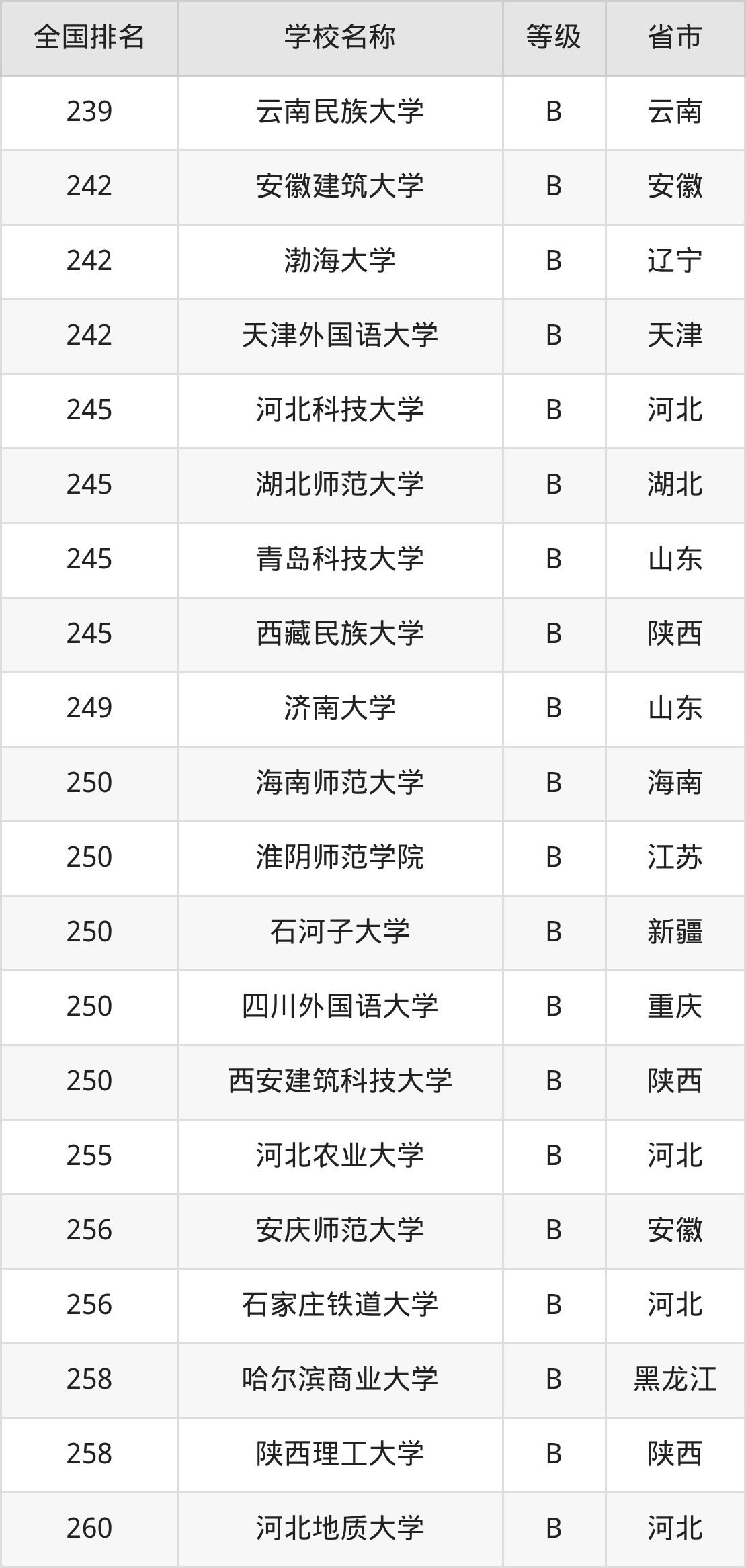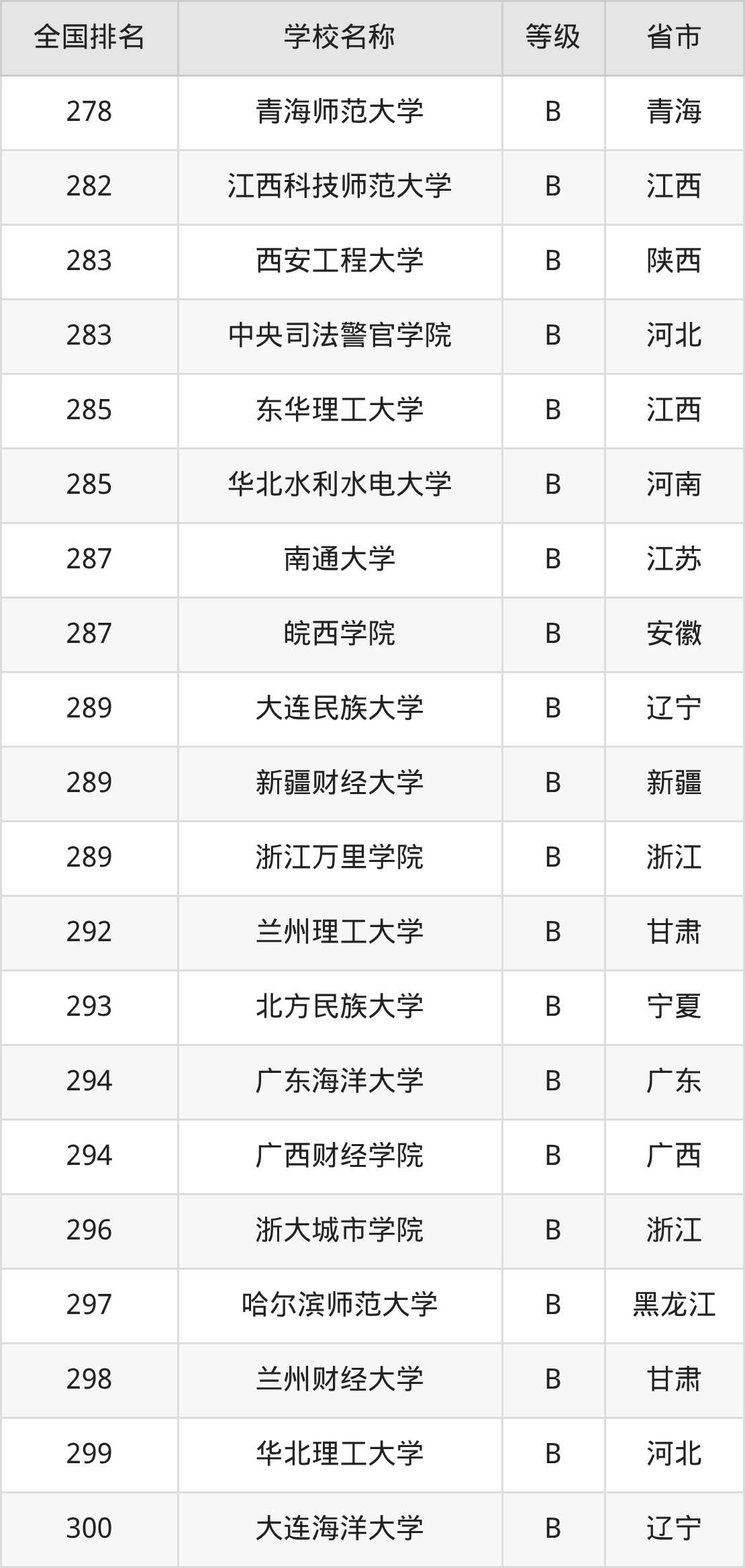 全国法学开设院校参与排名的共有309所,实力最强的是中国政法大学(全国排名第1名),其专业实力等级被评为A+级。