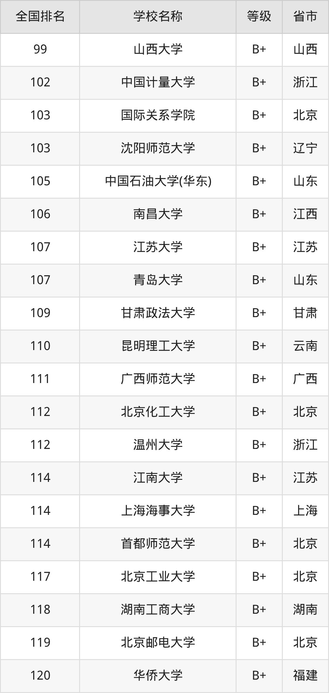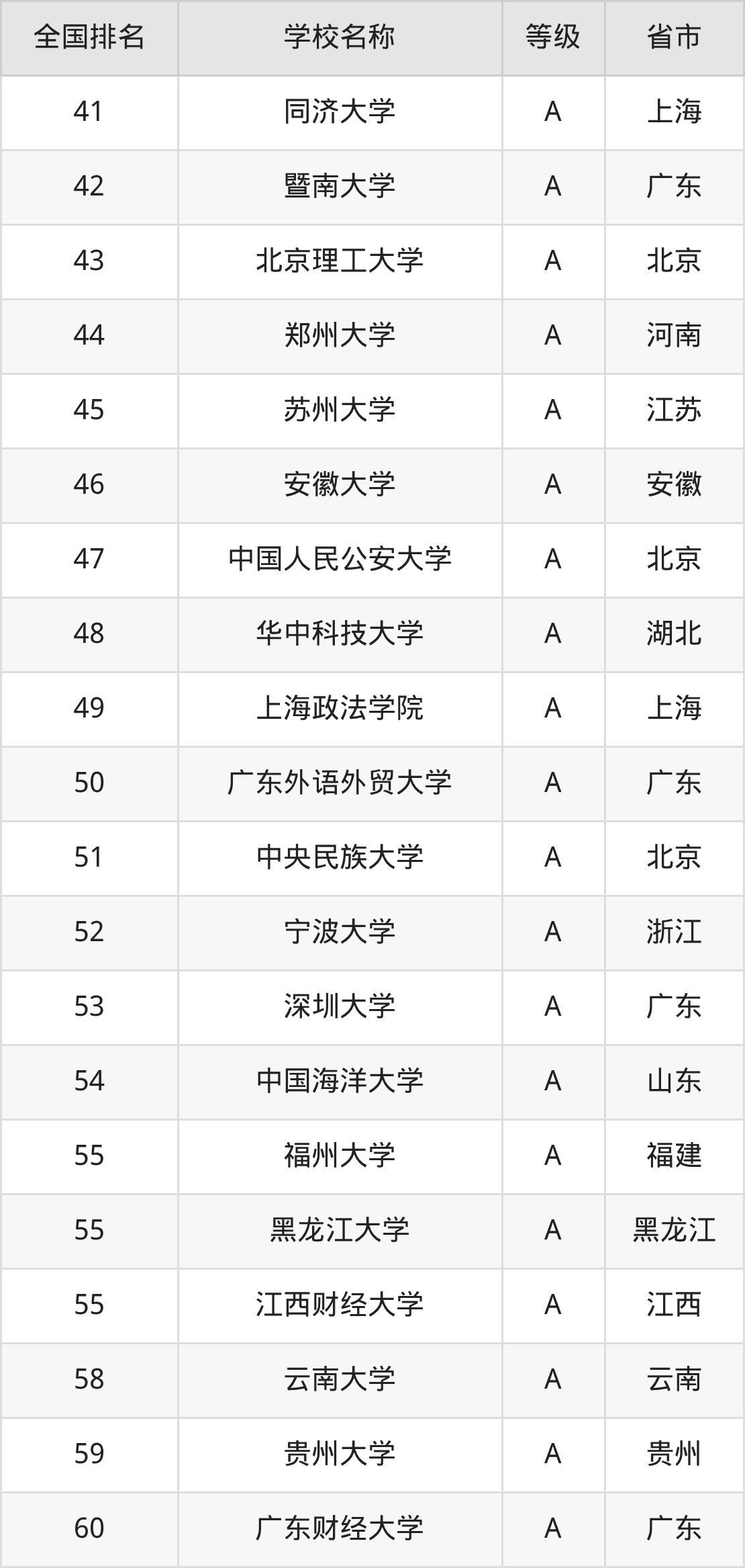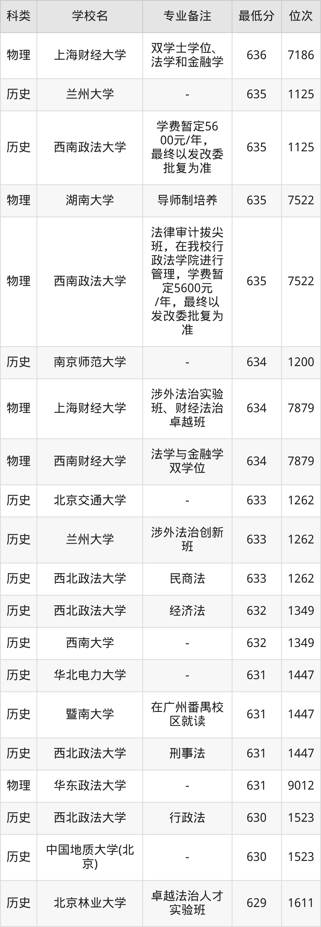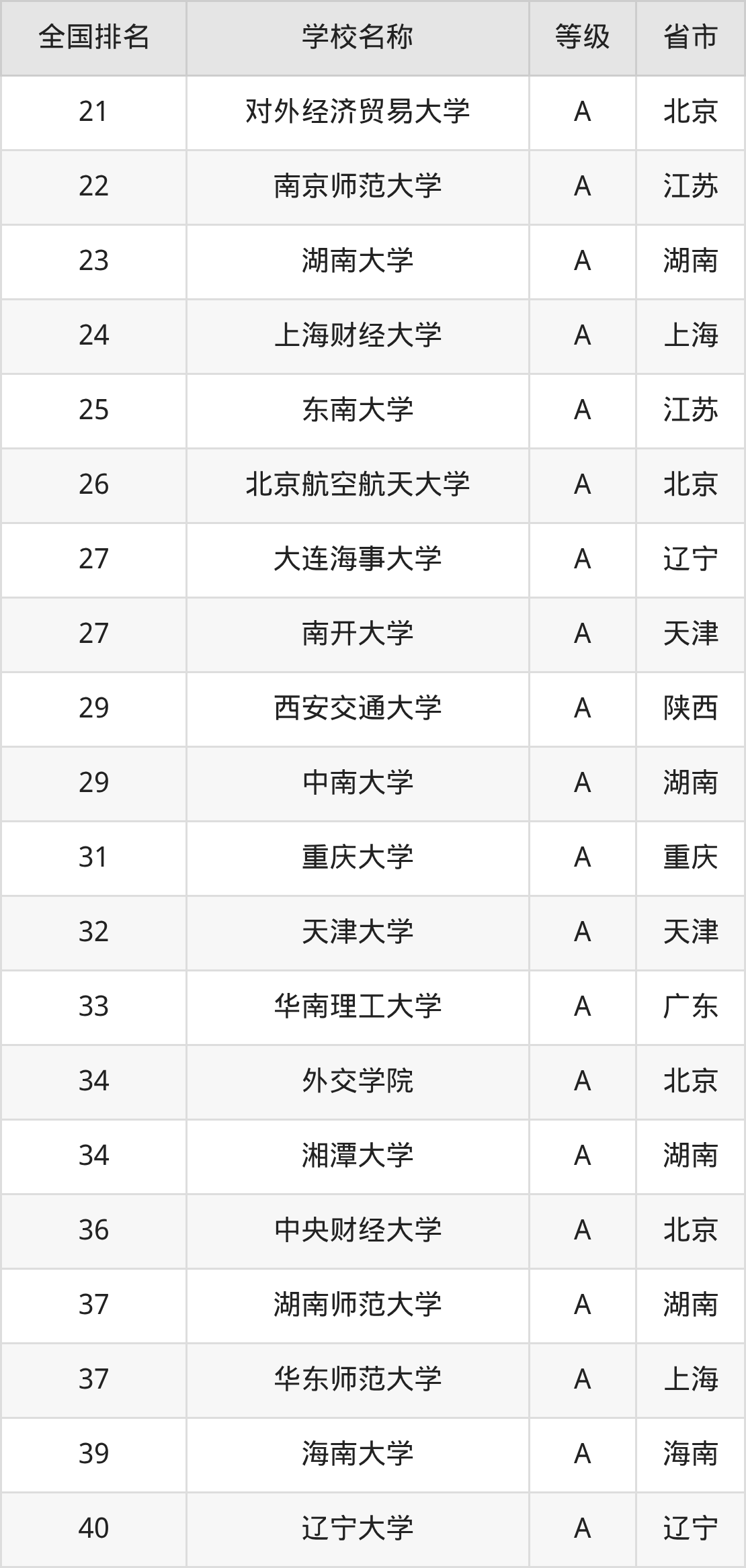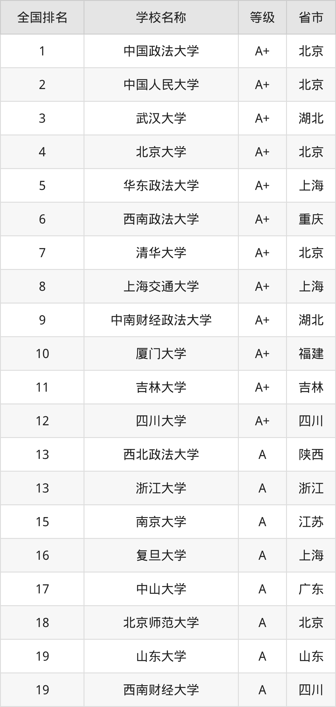 下面是法学专业全国排名前10的大学名单及实力评级: