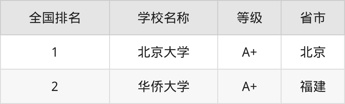 1、北京大学(A+级)