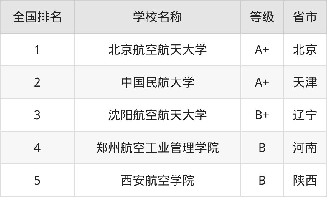 下面是飞行器质量与可靠性专业全国排名前5的大学名单及实力评级: