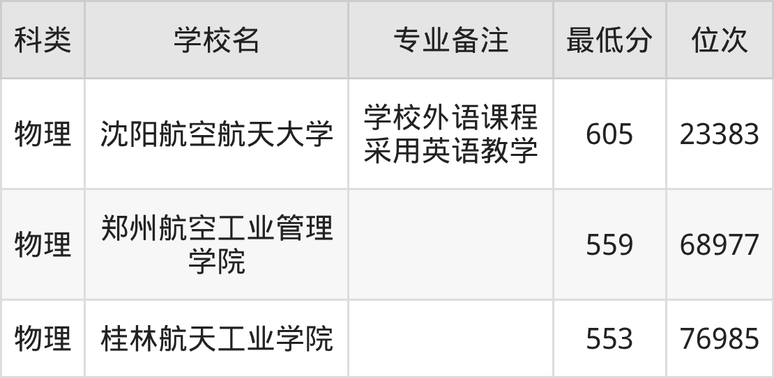 2025年全国大学飞行器质量与可靠性录取分数线在553分~605分之间。数据显示,考生如果想报考公办大学,分数要在553分及以上,最低分院校有桂林航天工业学院等。