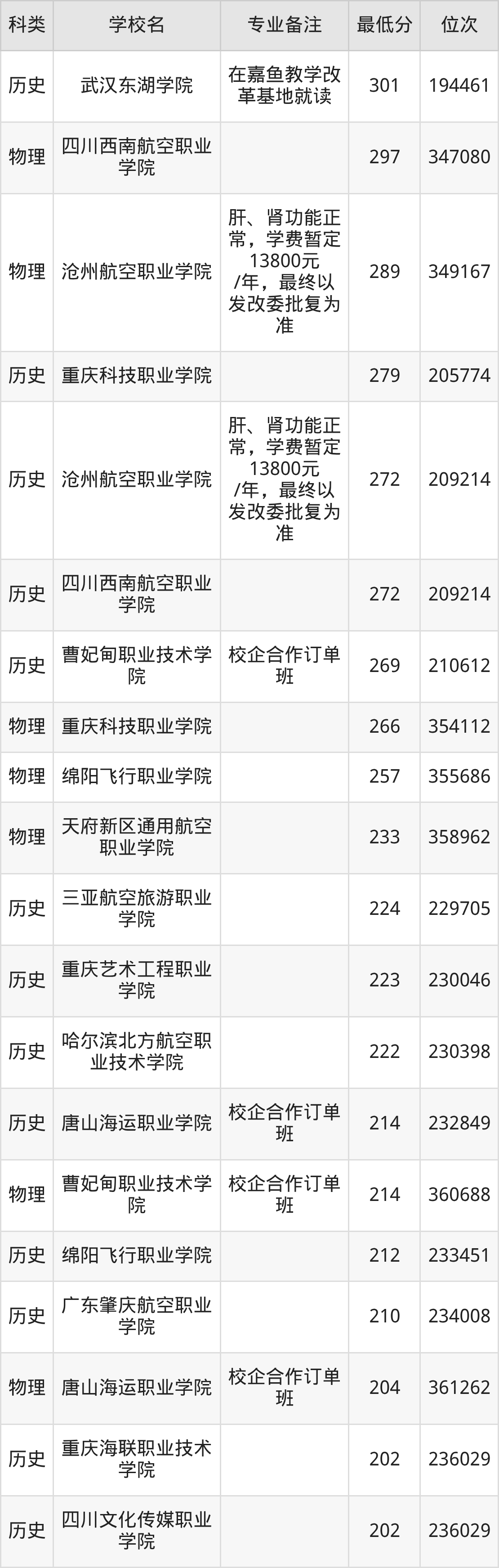 民航安全技术管理专业分数最低的民办大学是四川文化传媒职业学院、重庆海联职业技术学院,其2025年最低分为202分,考生只要超专科线2分即有概率能被录取。