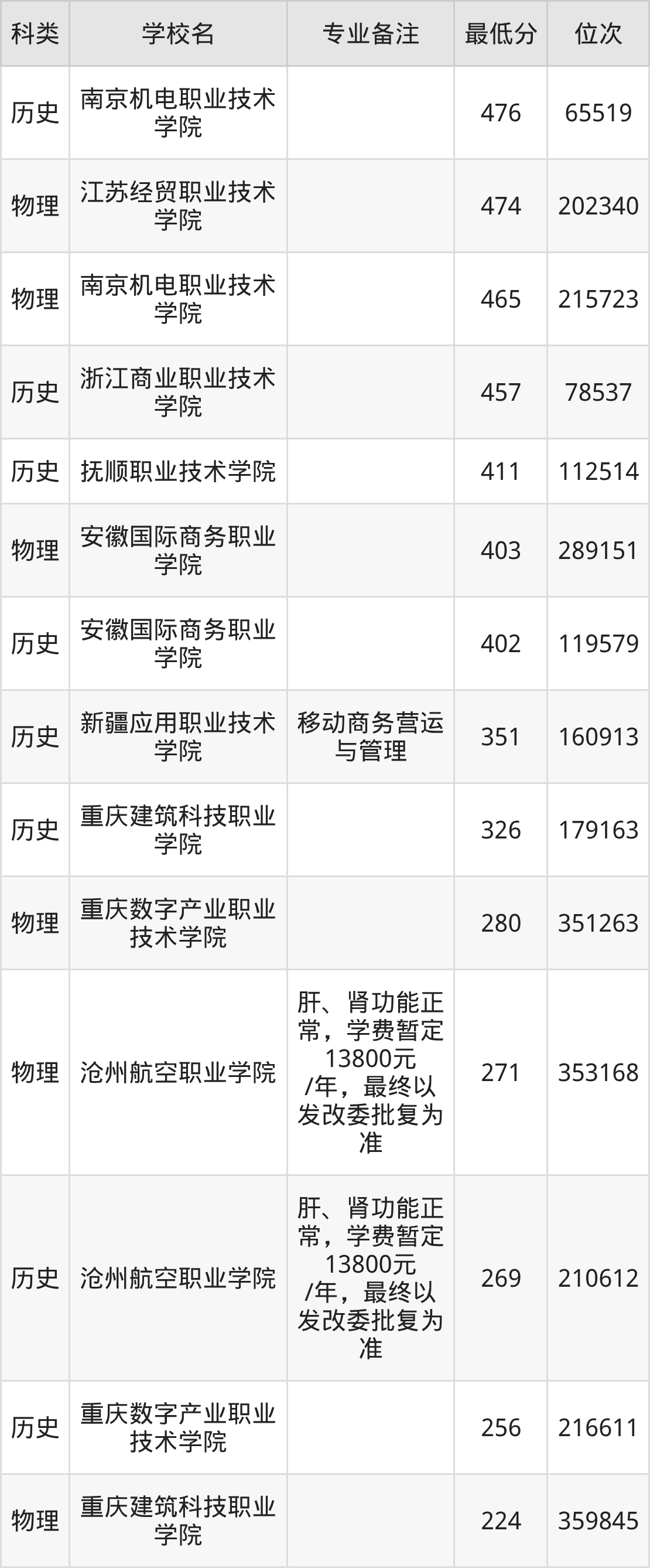 移动商务专业分数最低的民办大学是重庆建筑科技职业学院,其2025年最低分为224分,考生只要超专科线24分即有概率能被录取。