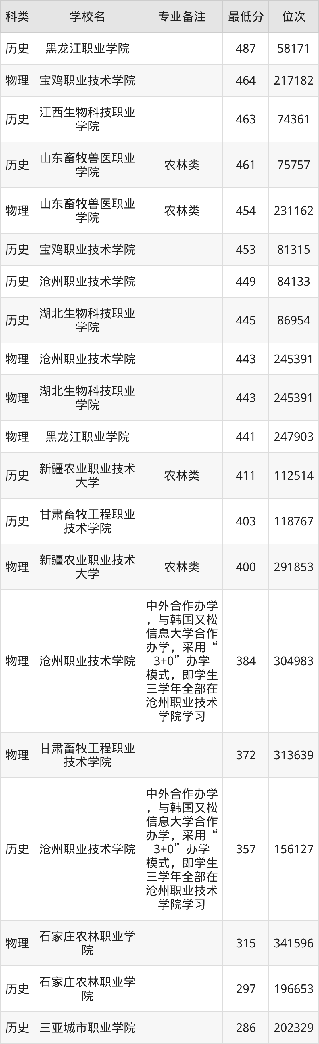 下面是2025年宠物养护与驯导录取分数线Top22一览表: