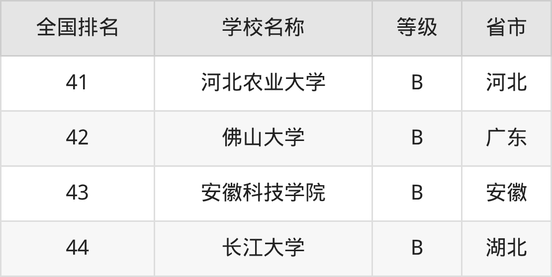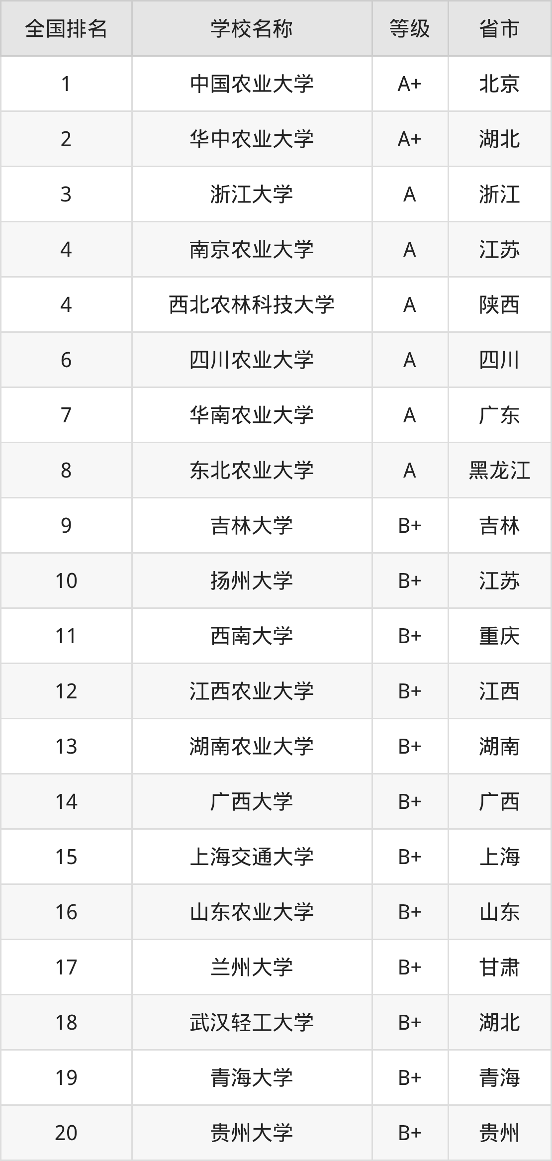下面是动物科学专业全国排名前10的大学名单及实力评级:
