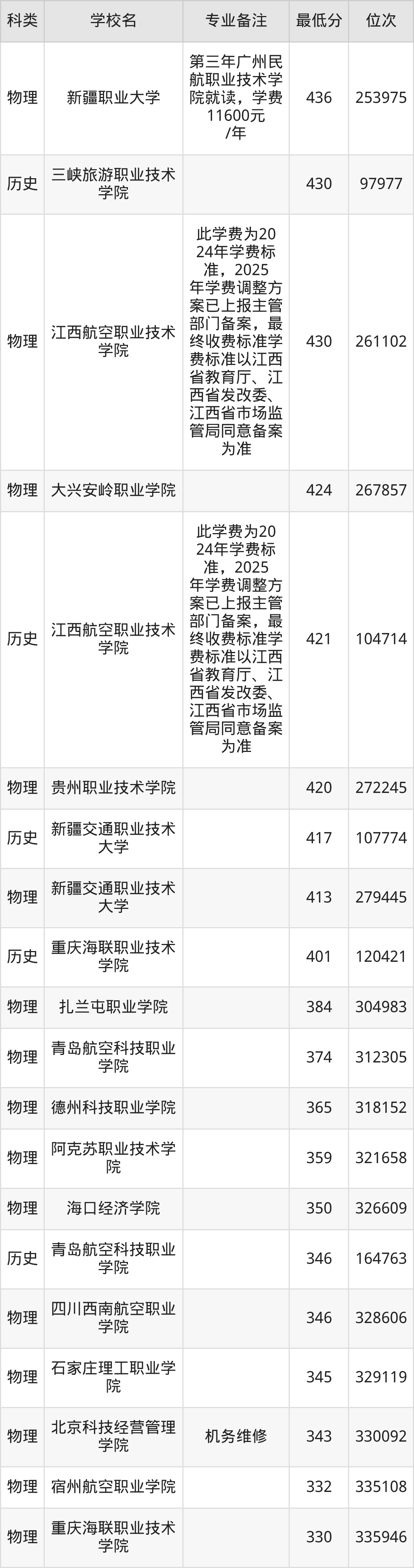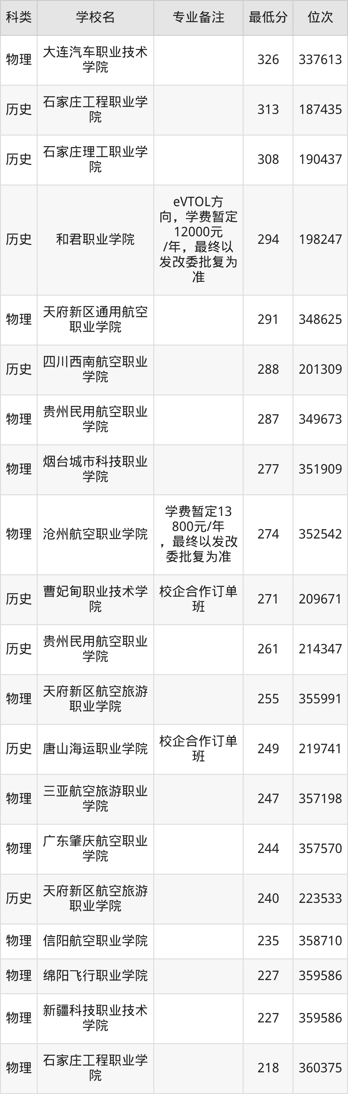下面是2025年飞机机电设备维修录取分数线Top66一览表: