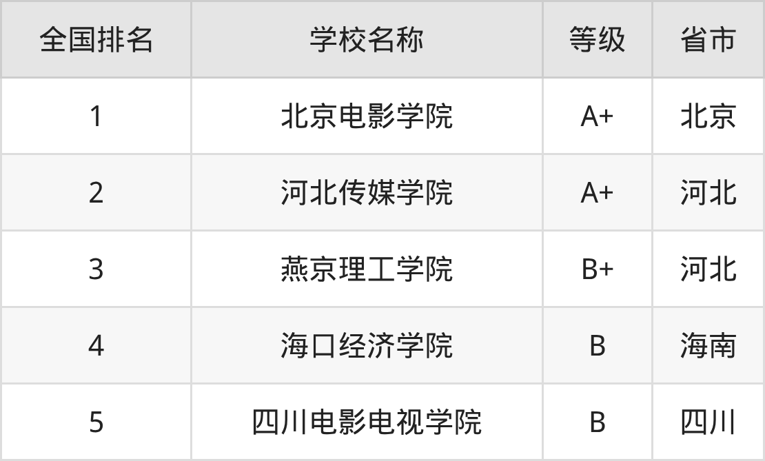 1、北京电影学院(A+级)