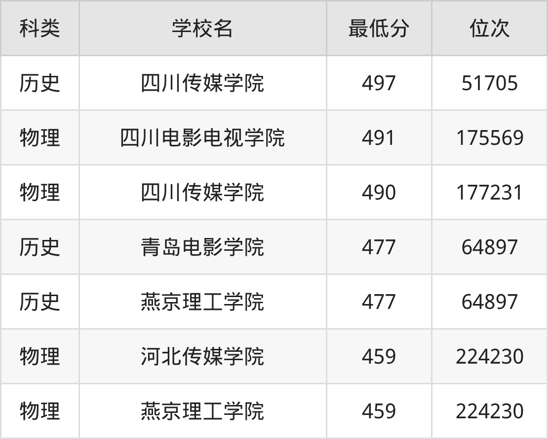 下面是2025年影视技术录取分数线Top7一览表: