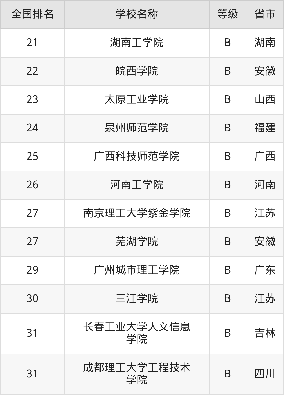 完整版排名请看下表: