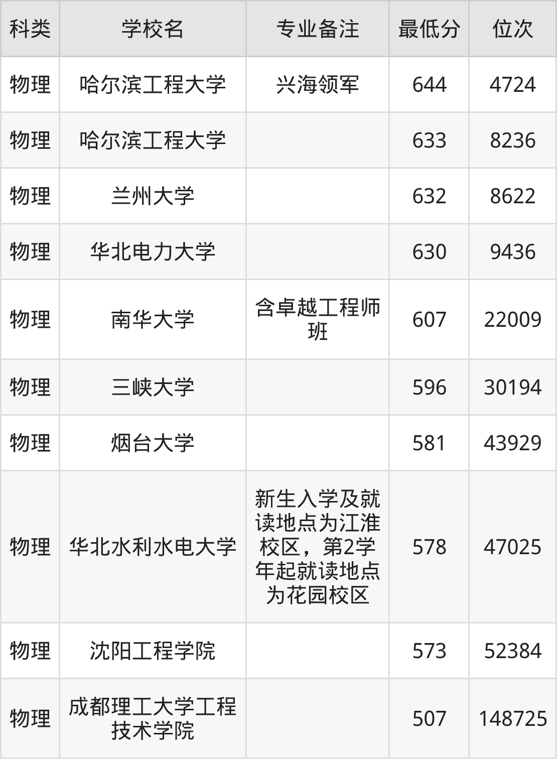 下面是2025年核工程与核技术录取分数线Top10一览表: