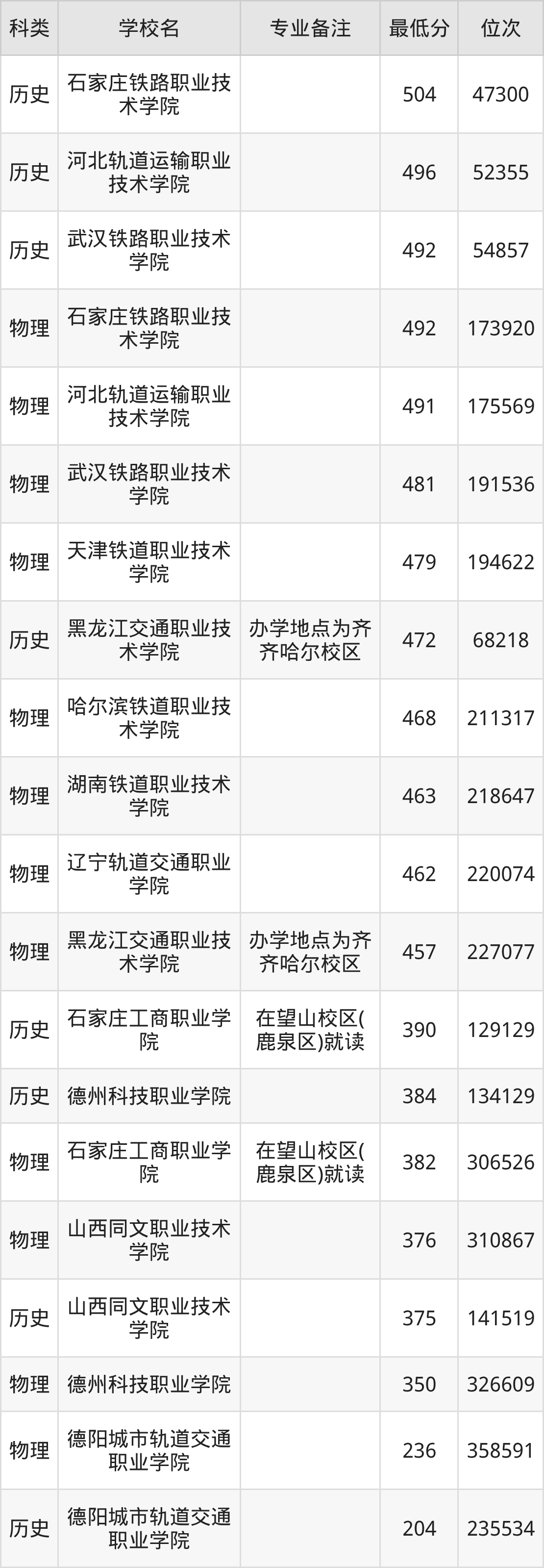 下面是2025年高速铁路综合维修技术录取分数线Top20一览表: