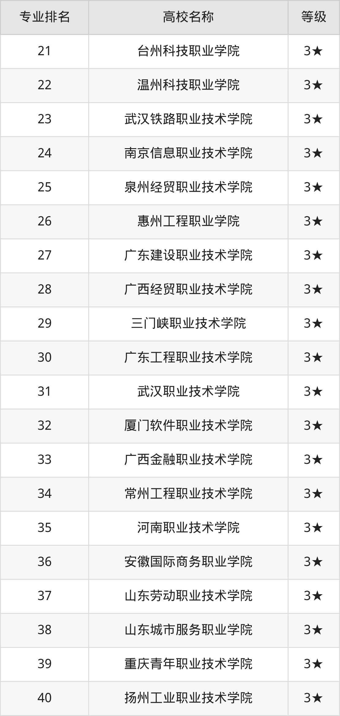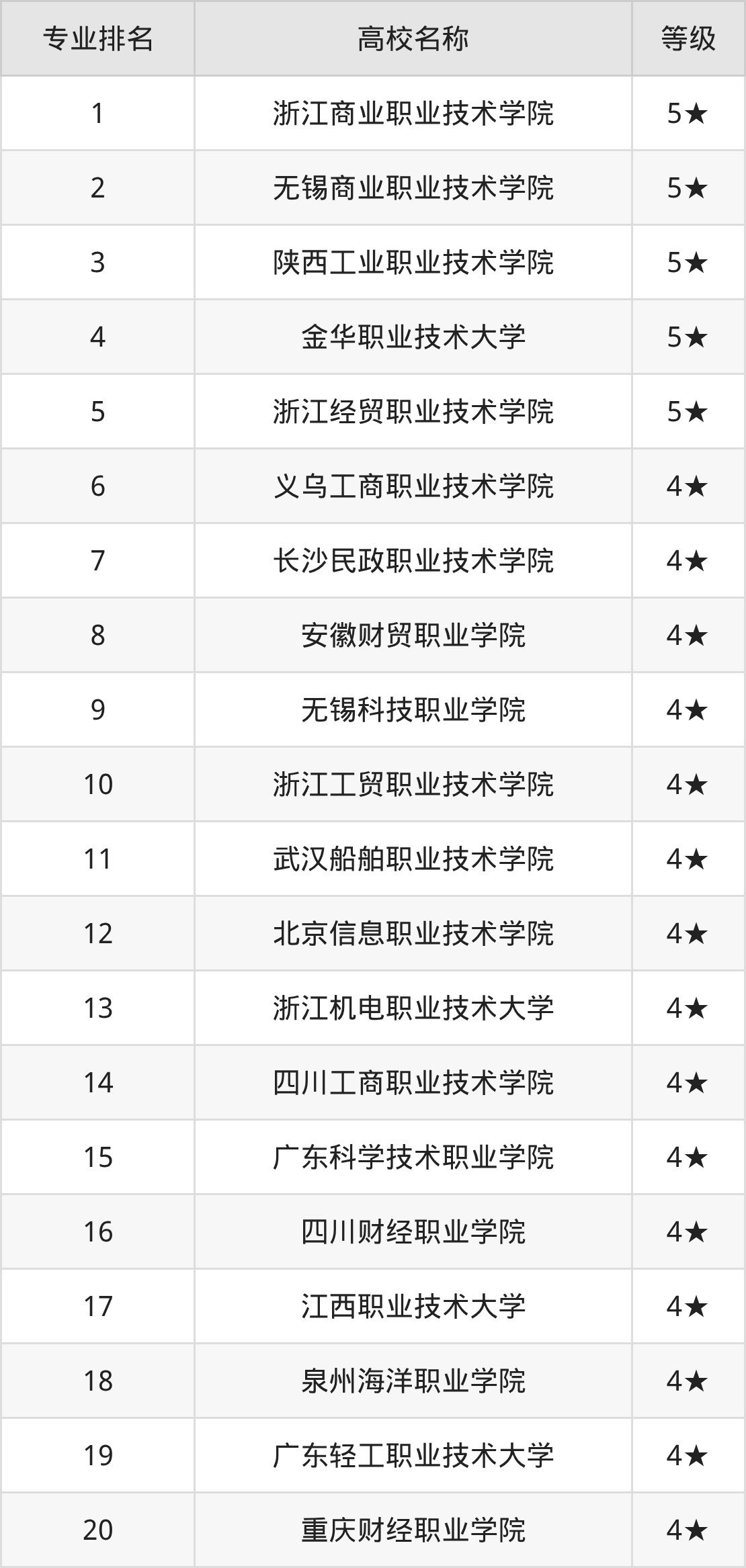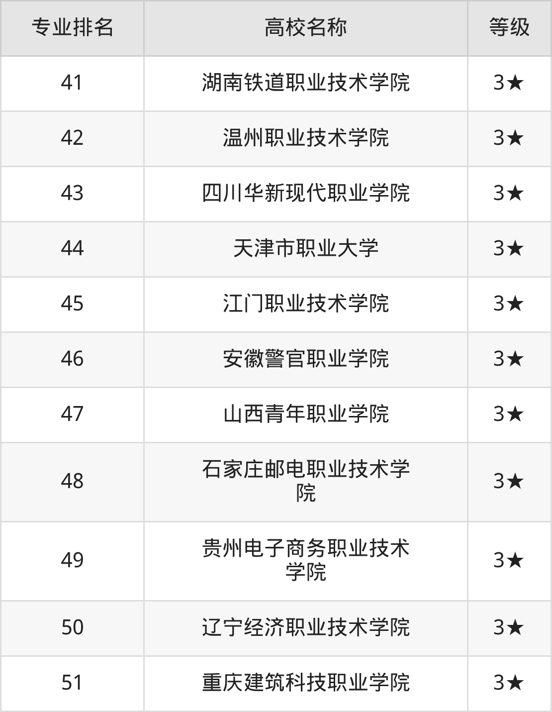 全国商务数据分析与应用开设院校参与排名的共有51所,实力最强的是浙江商业职业技术学院(全国排名第1名),其专业实力等级被评为5★级。