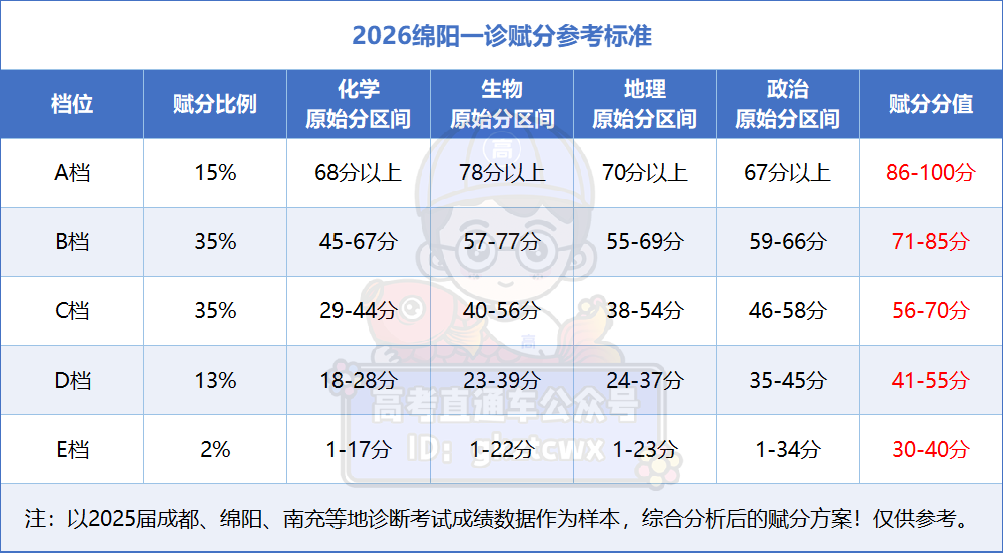那么,本次绵阳一诊的赋分标准到底如何?下面整理出绵阳一诊赋分参考标准供大家参考:
