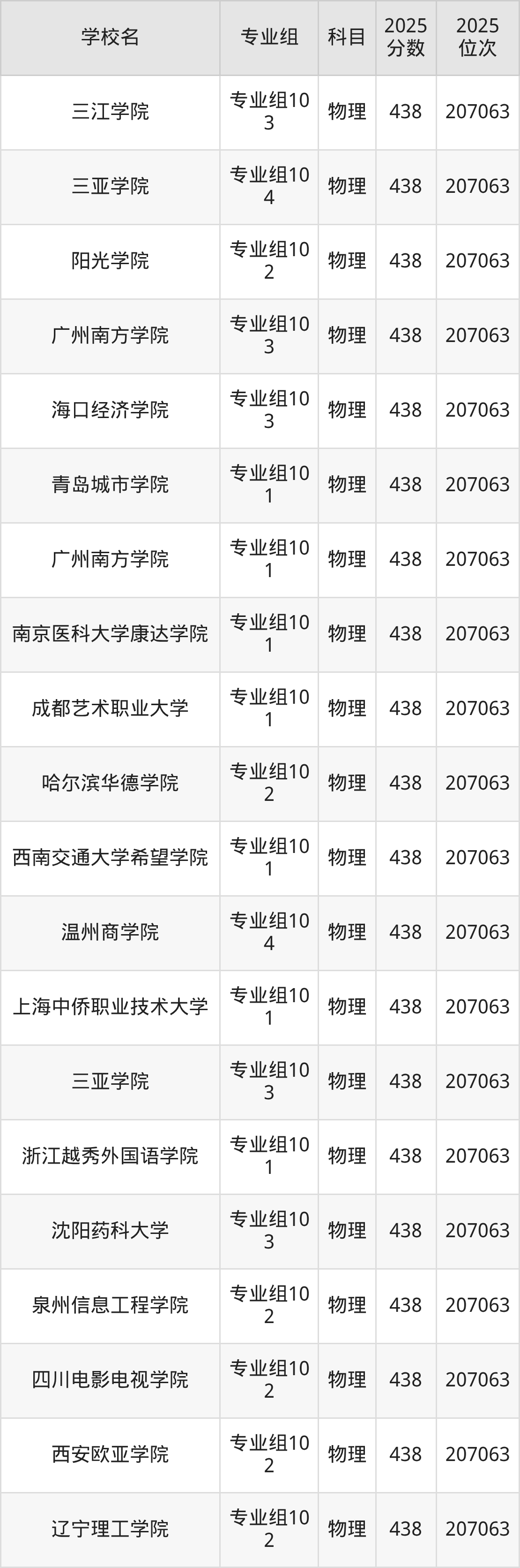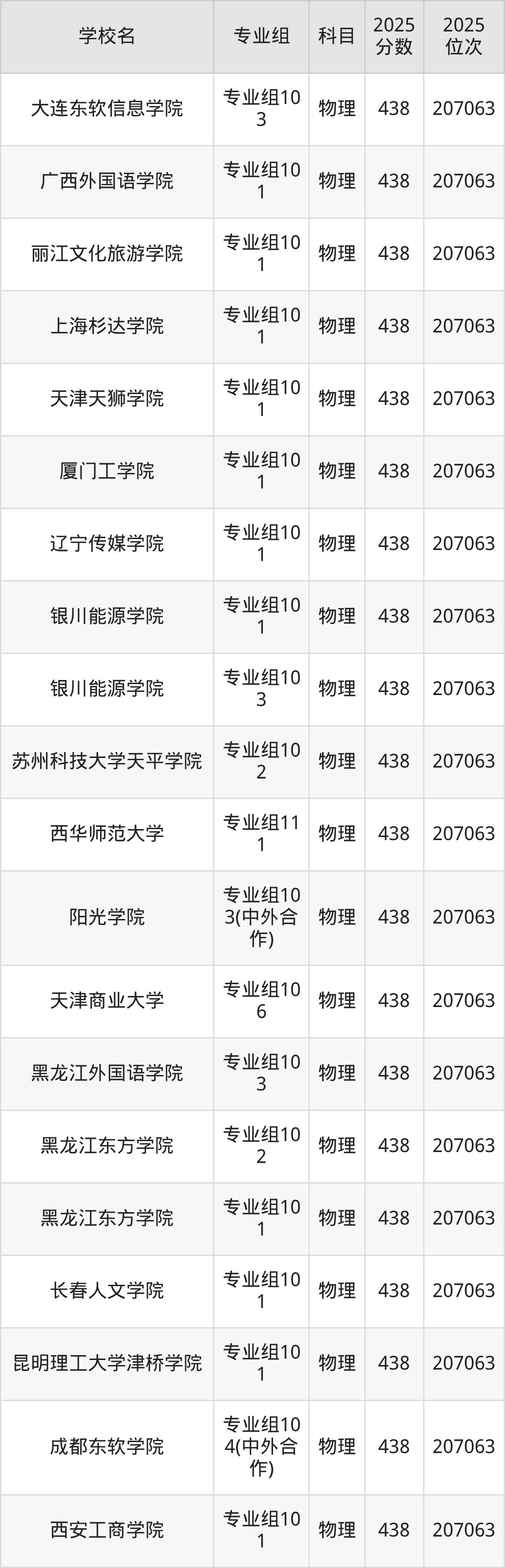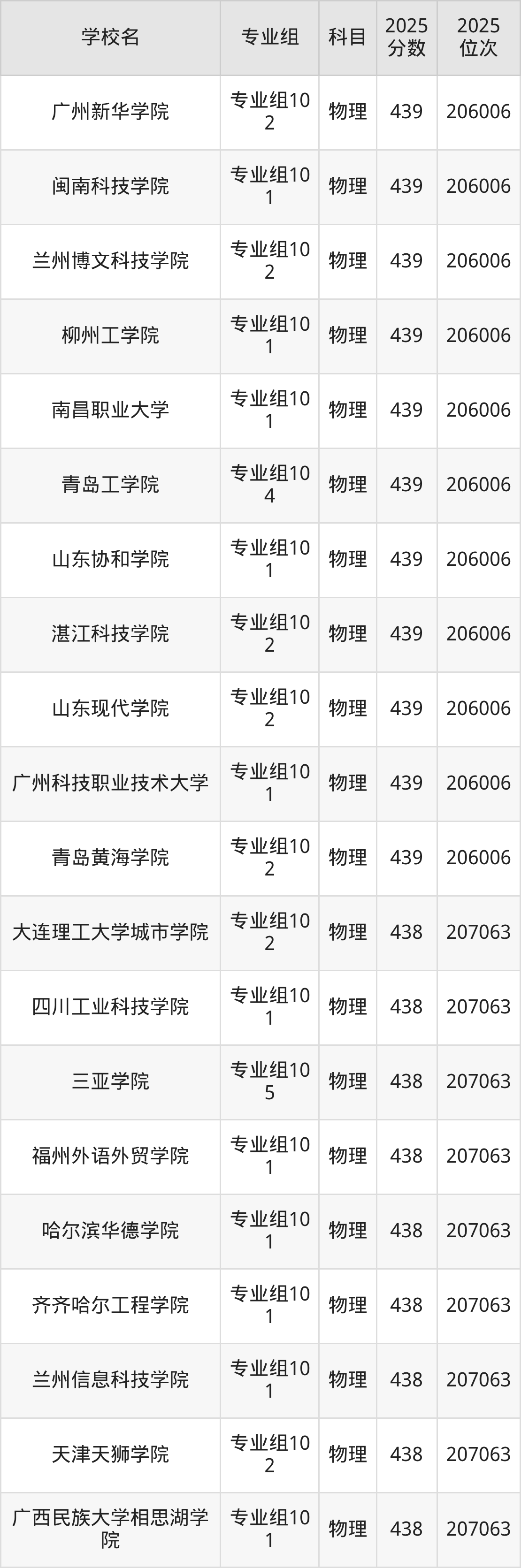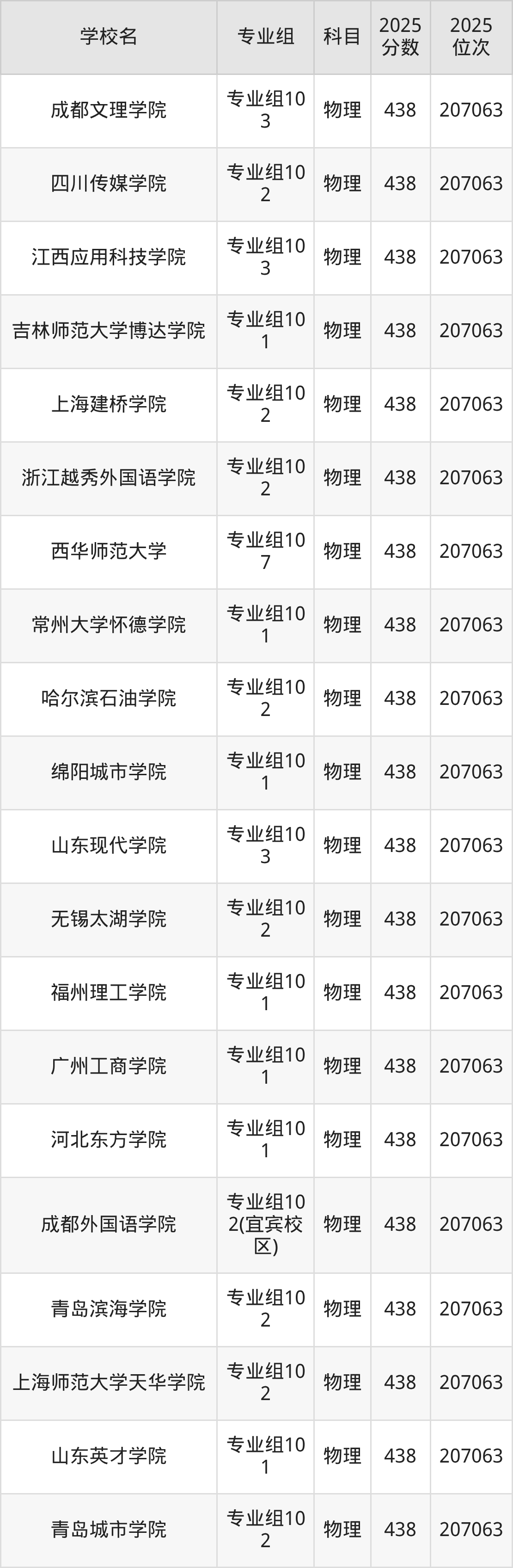 四川物理类439分对应的位次排名是206006名,因此建议2026年位次排在这附近的考生考虑这些大学。